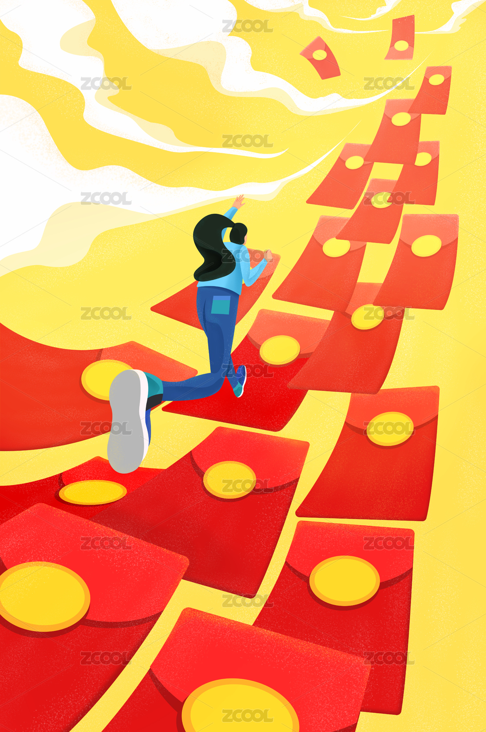 在促销红包上奔跑的人
