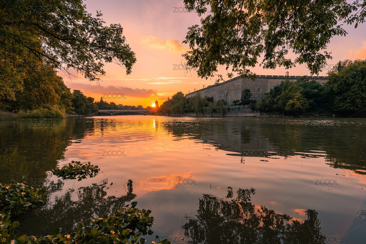 日落时的南京秦淮河畔的明城墙