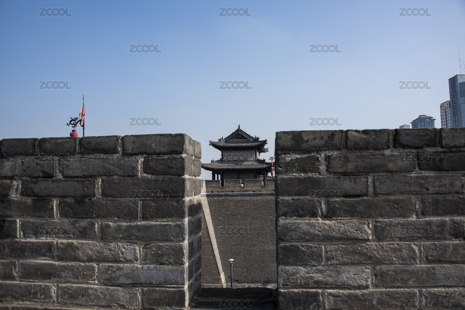 中国陕西西安长乐门明城墙城楼灰砖墙