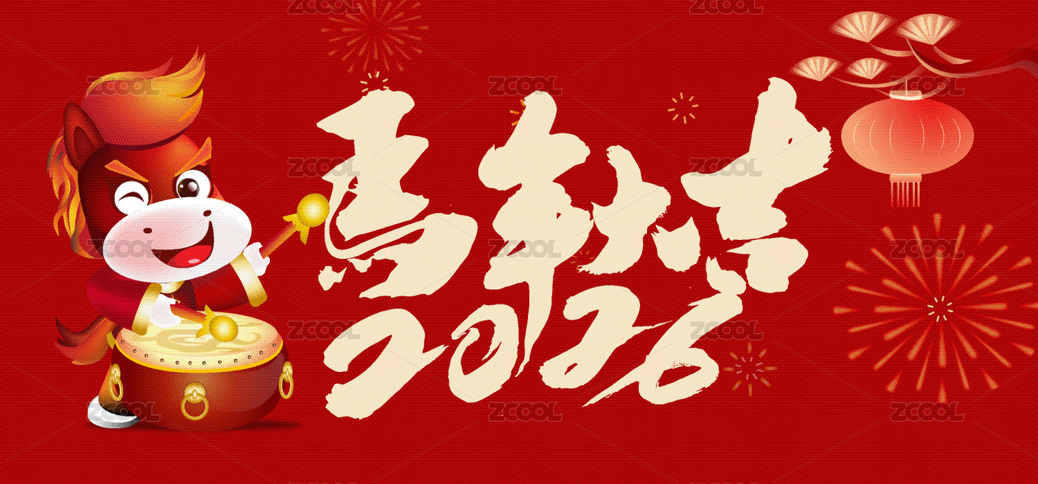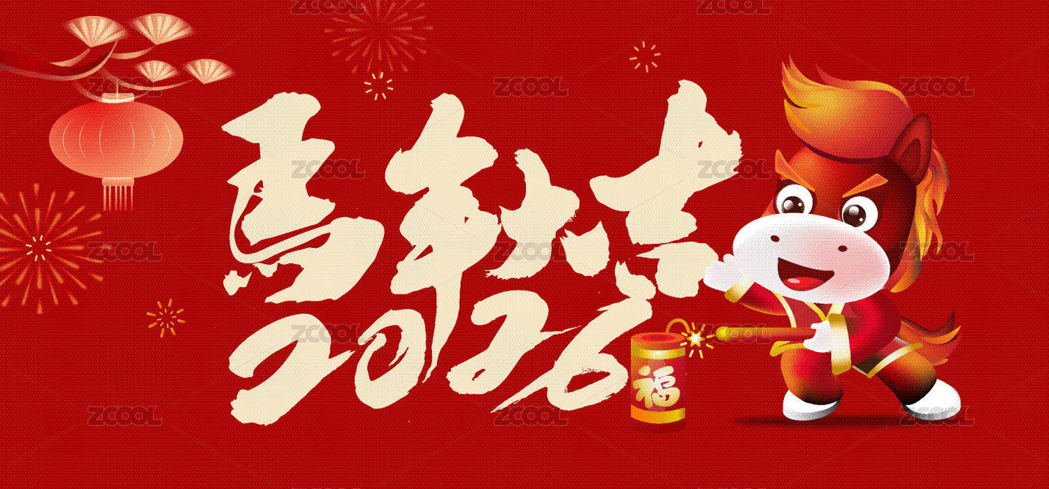 国潮马年2026双马贺岁吉祥物卡通庆典