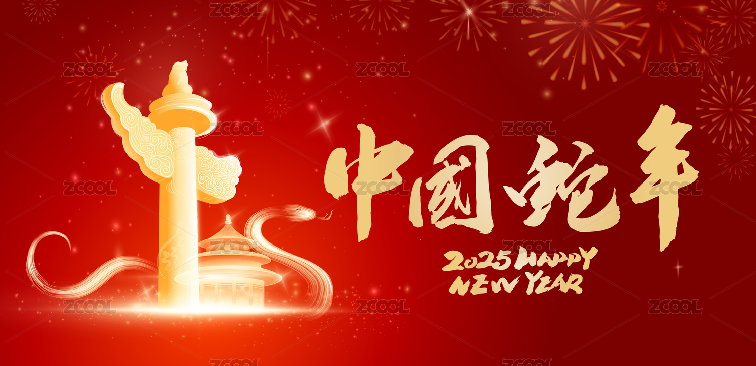 中国风蛇年春节金蛇献瑞北京地标节日庆典设