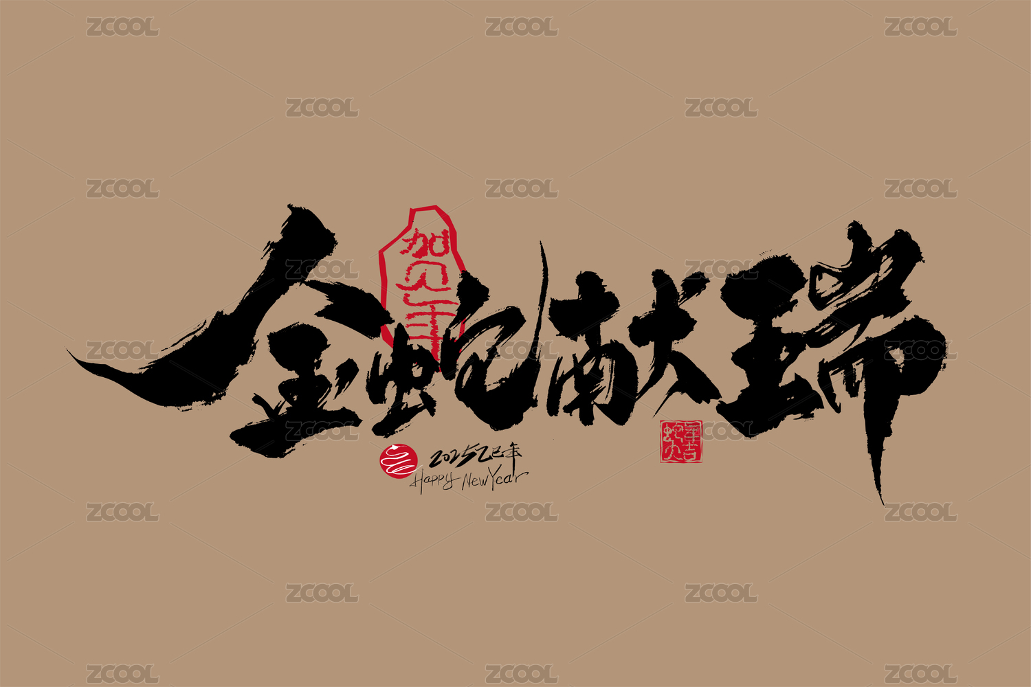 大气手写金蛇献瑞字体设计
