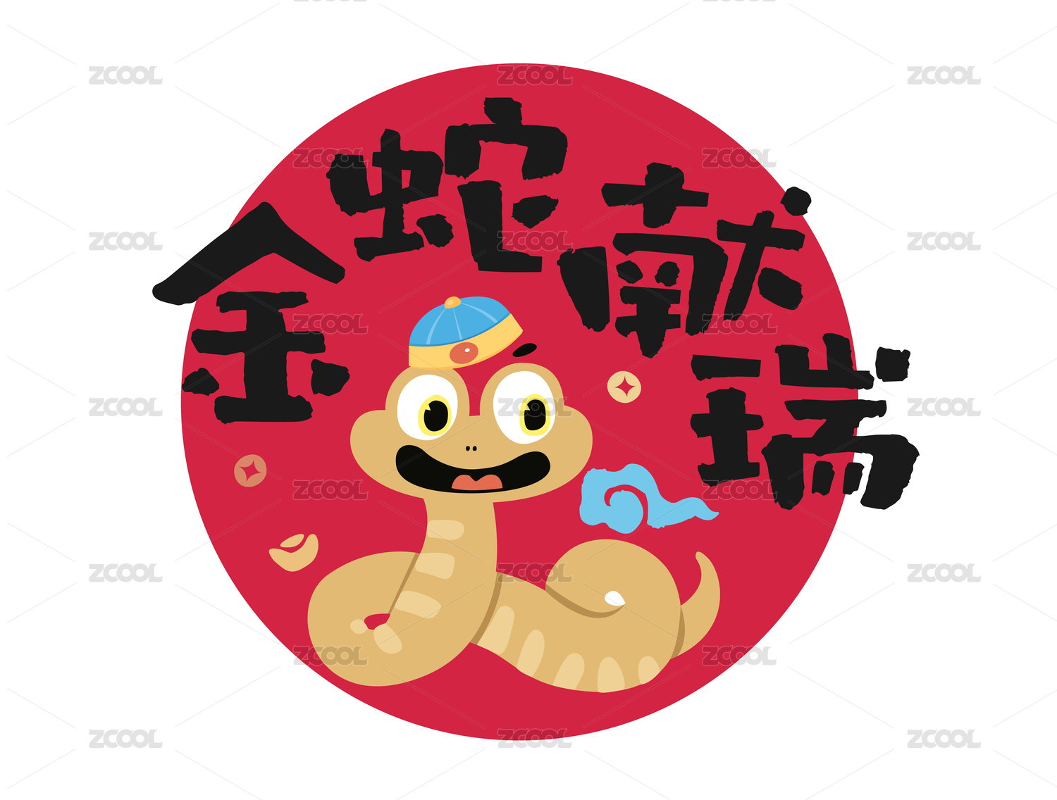 蛇年-金蛇献瑞插画