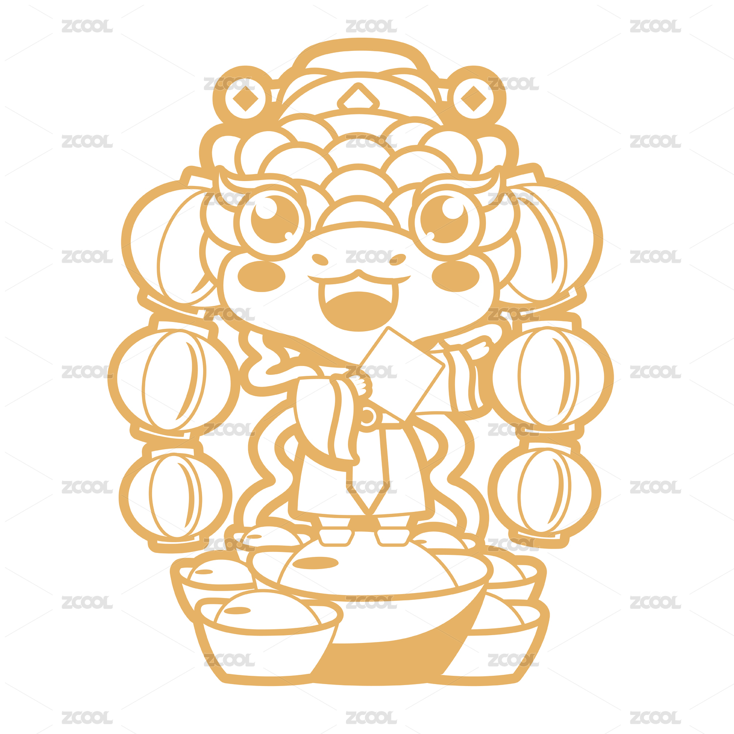 春节蛇年禄字窗贴窗花插画元素