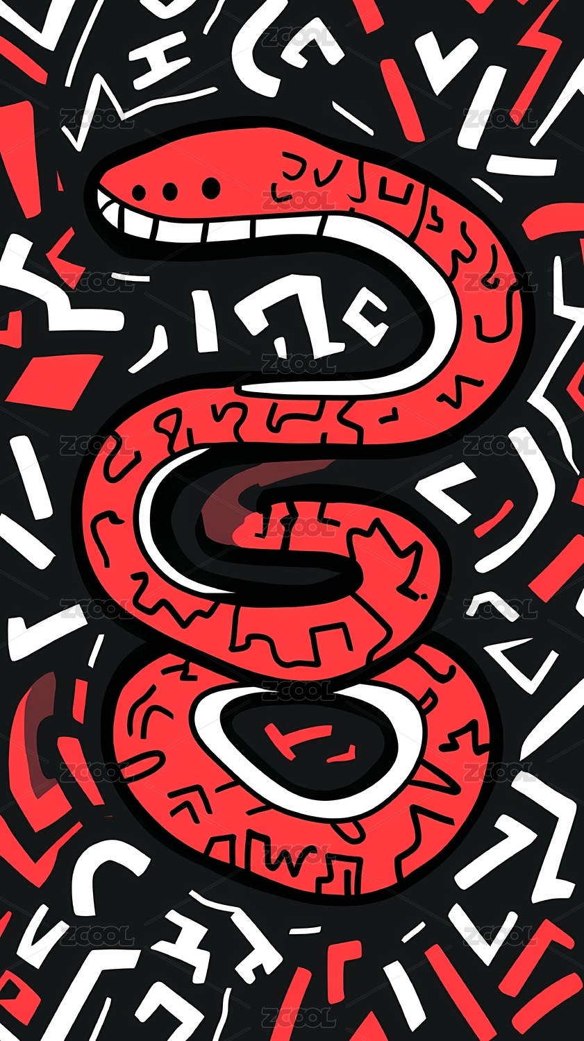 红色线条描边的卡通蛇图案