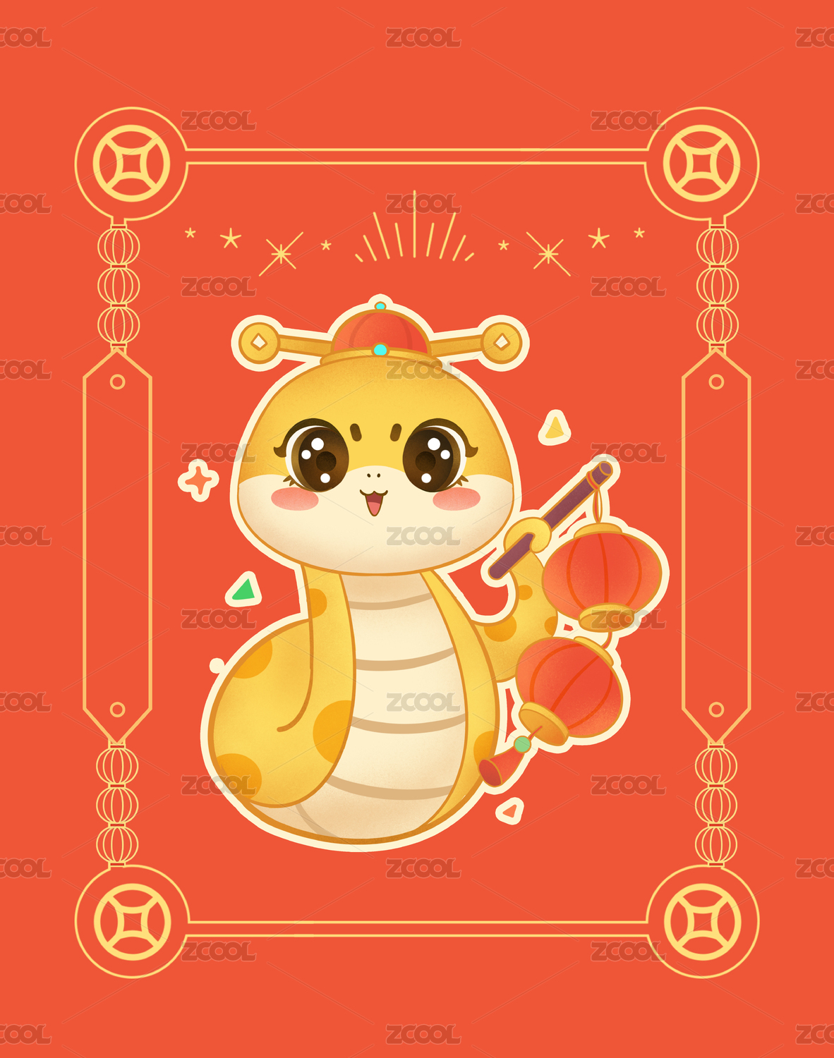 蛇行大运·蛇年卡通新年吉祥物