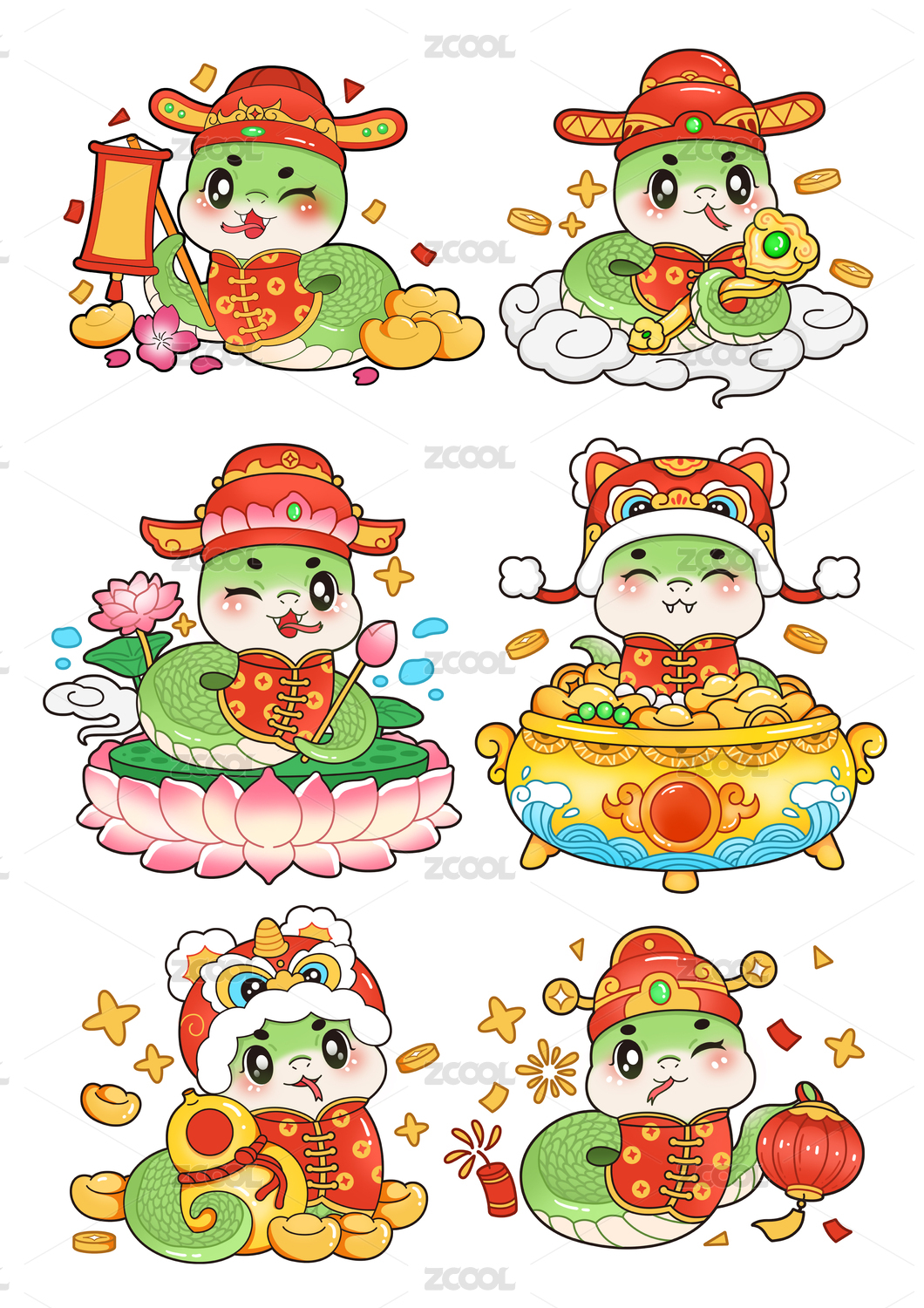 金蛇献瑞 | 蛇年主题卡通插画设计