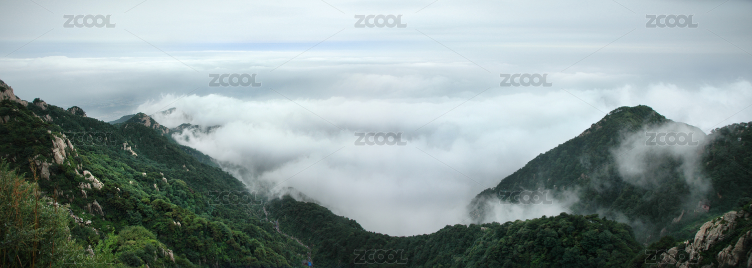 山东泰安与雾缭绕的泰山山顶