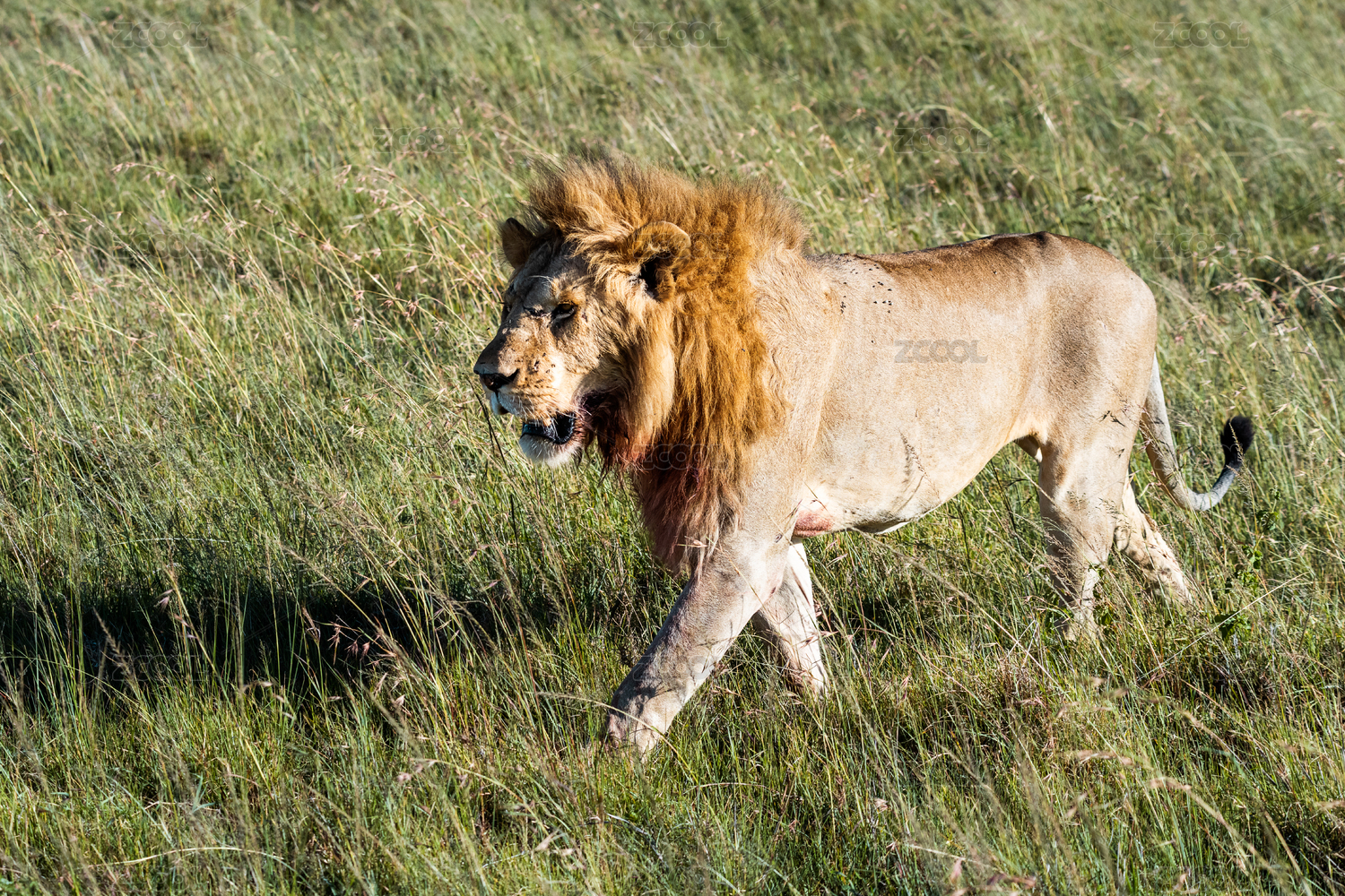 行走在非洲草原上的狮子步伐矫健威武雄壮