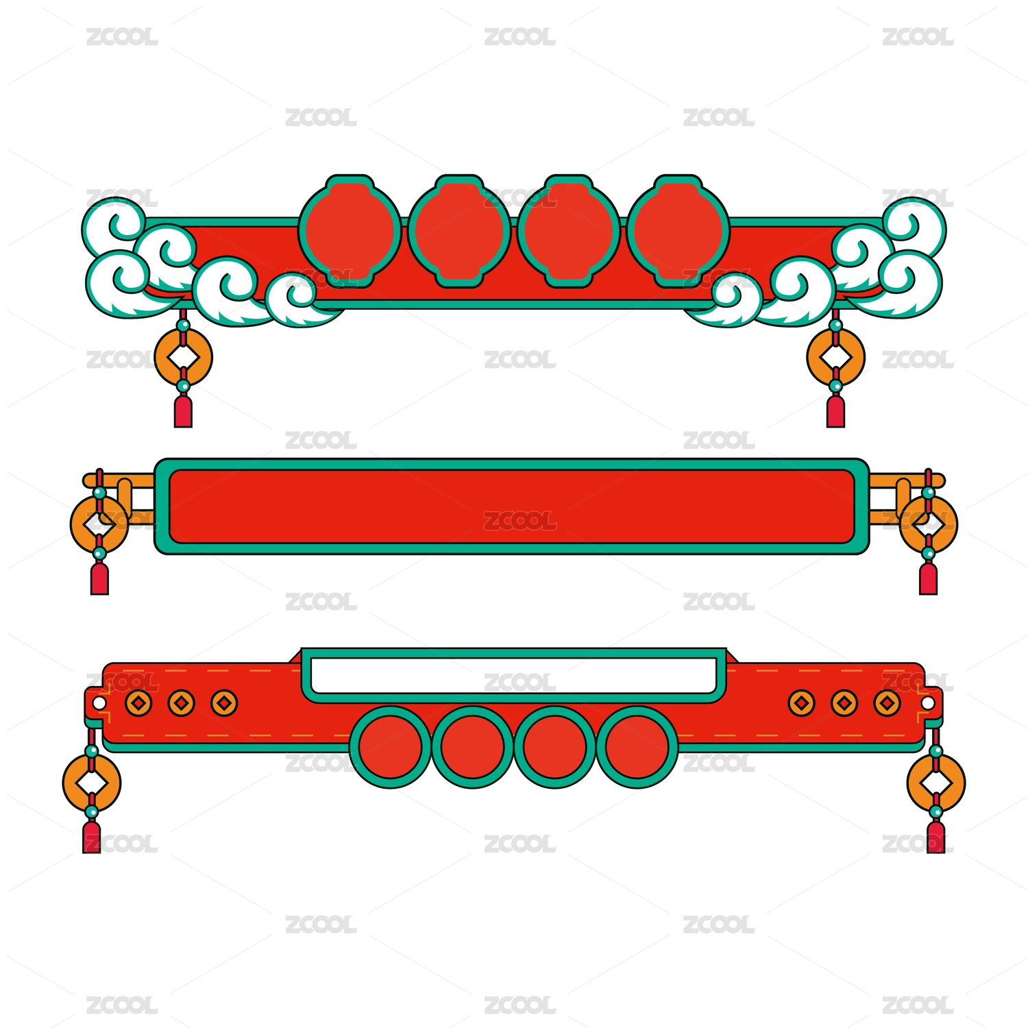 新年复古国潮矢量古典标题框春节主题框