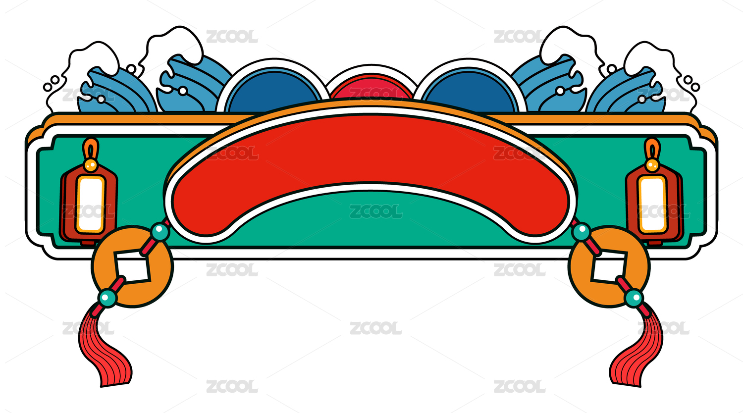 新年海浪复古国潮矢量古典标题框春节主题框