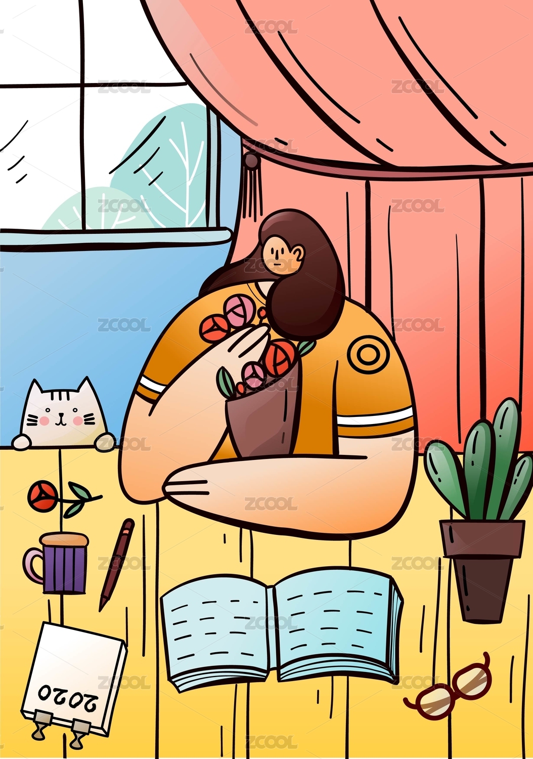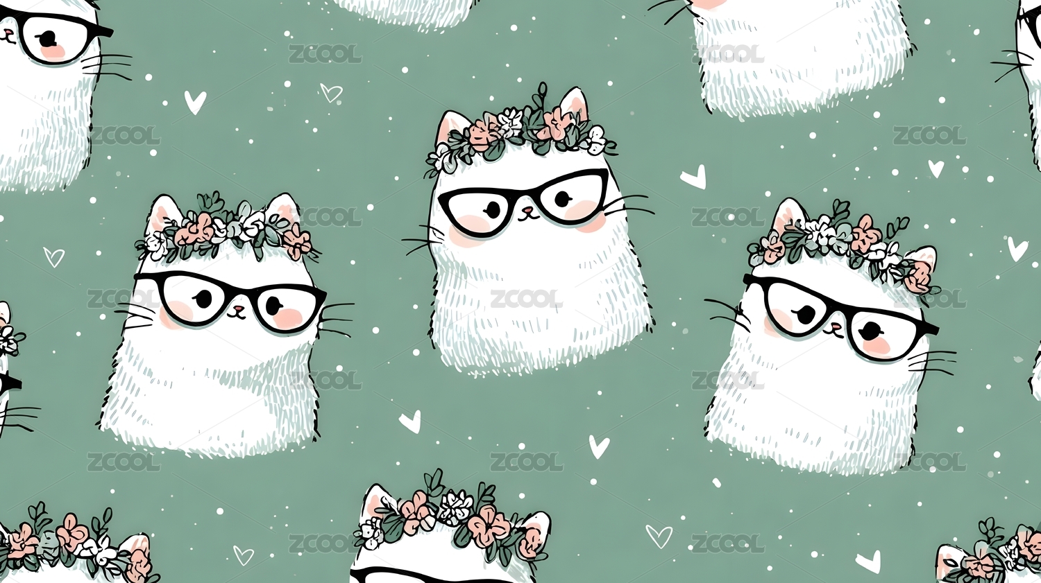 数码波西米亚猫猫图案装饰抽象图形海报背景