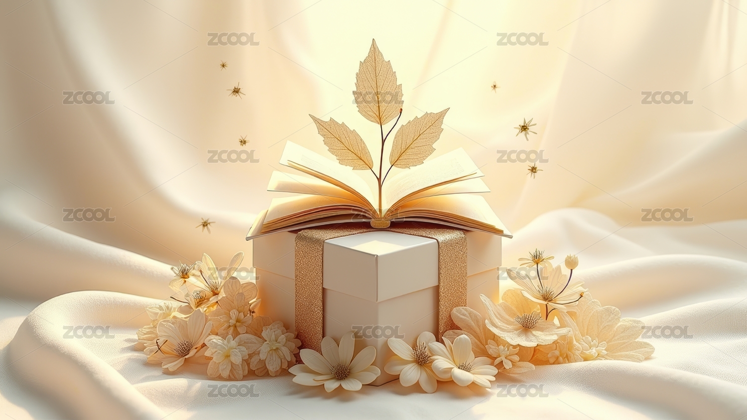 礼盒旁的金色叶片