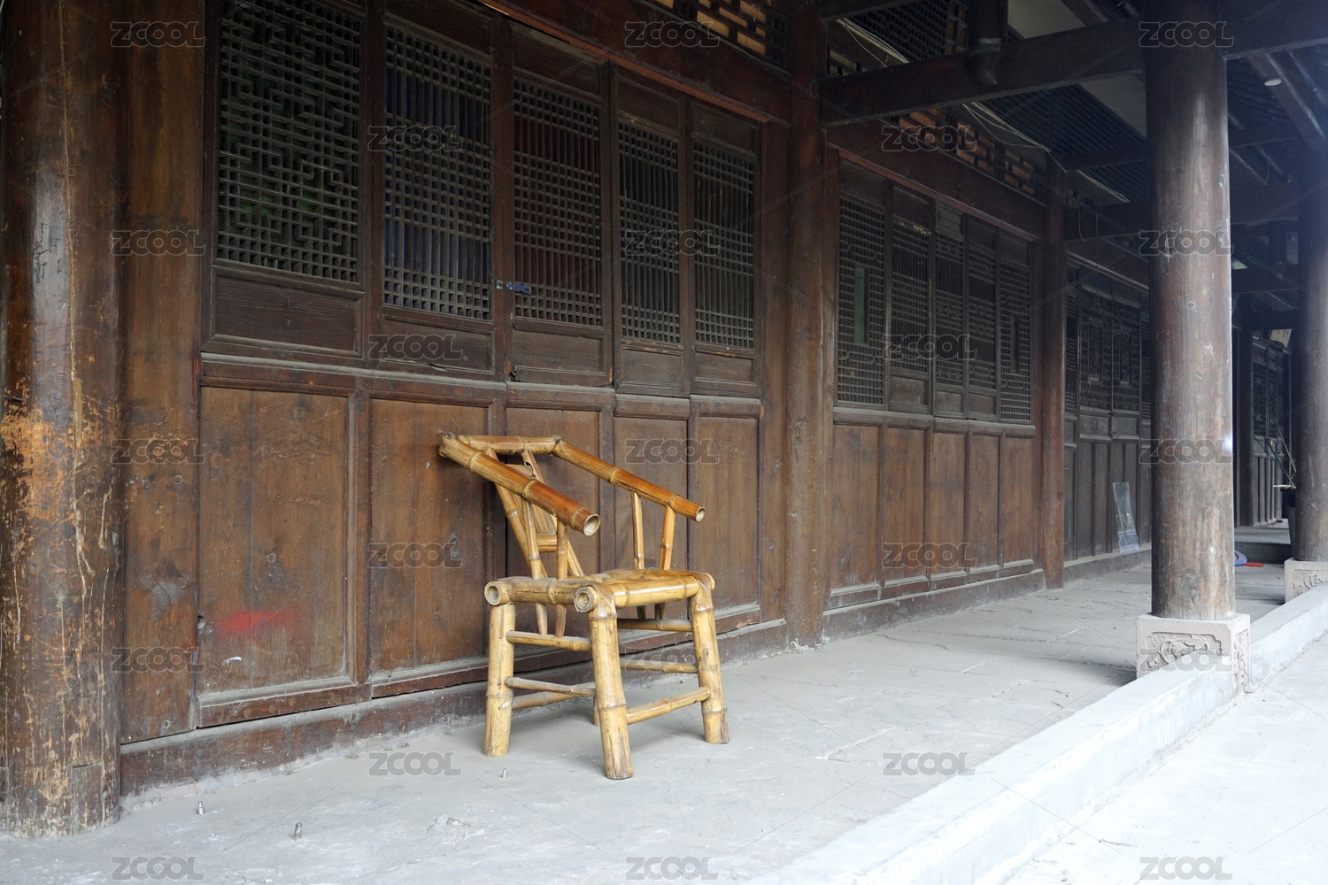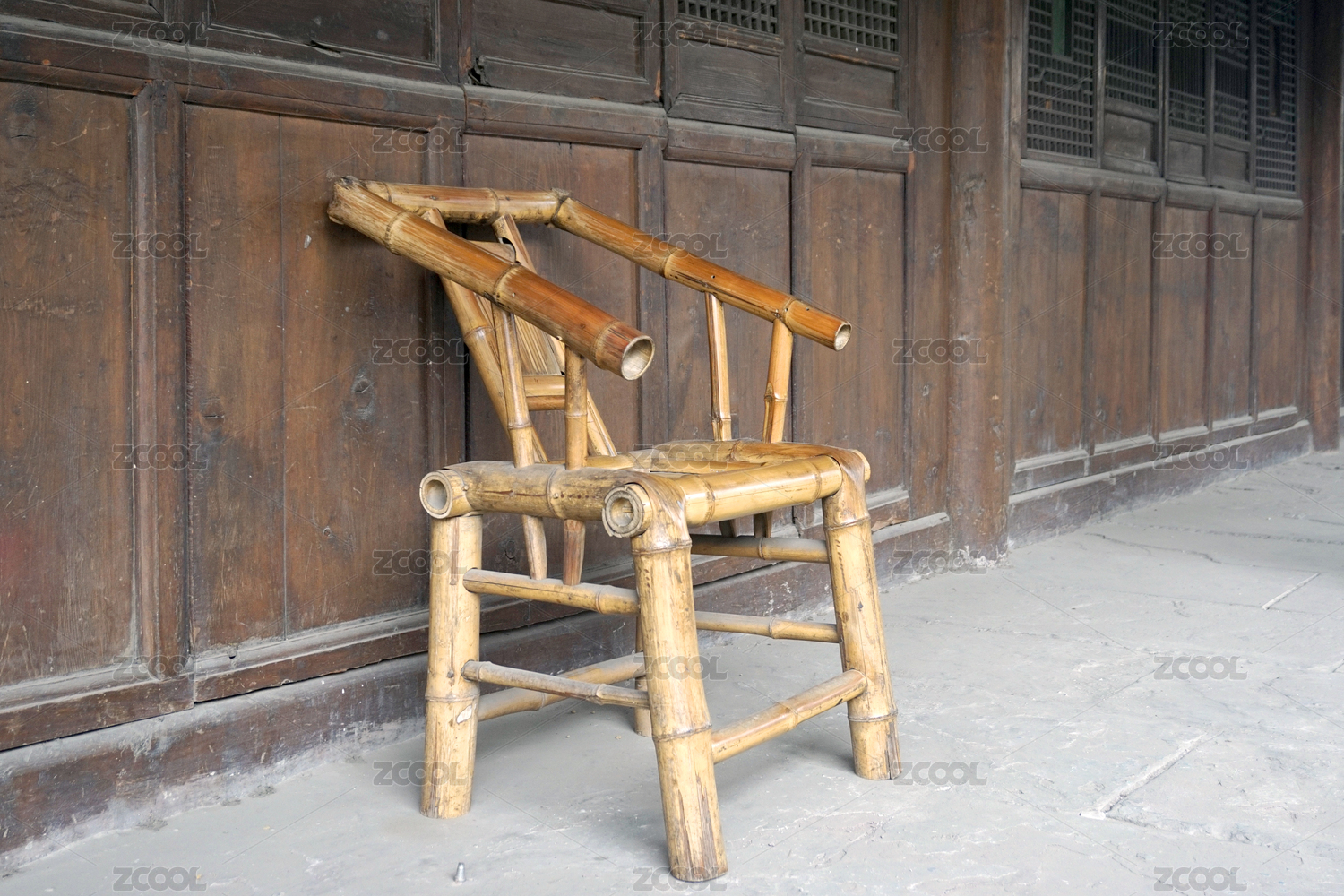 中国四川老成都民俗公园 木墙老式川西竹椅