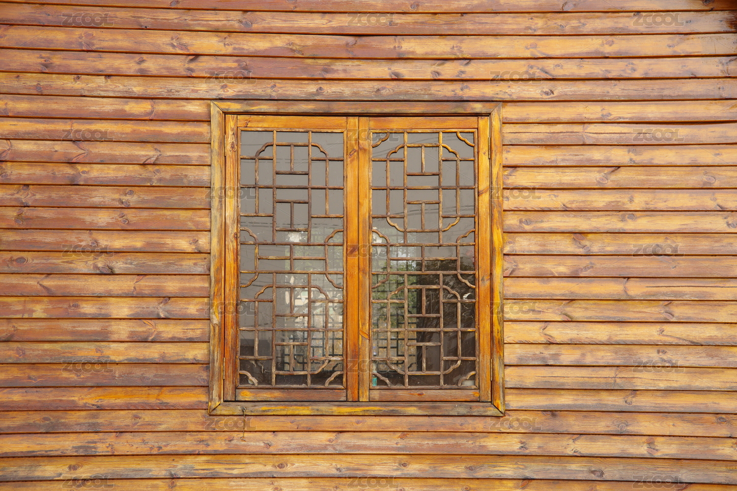 中国新疆尉犁县罗布人村寨接待大厅圆木墙窗