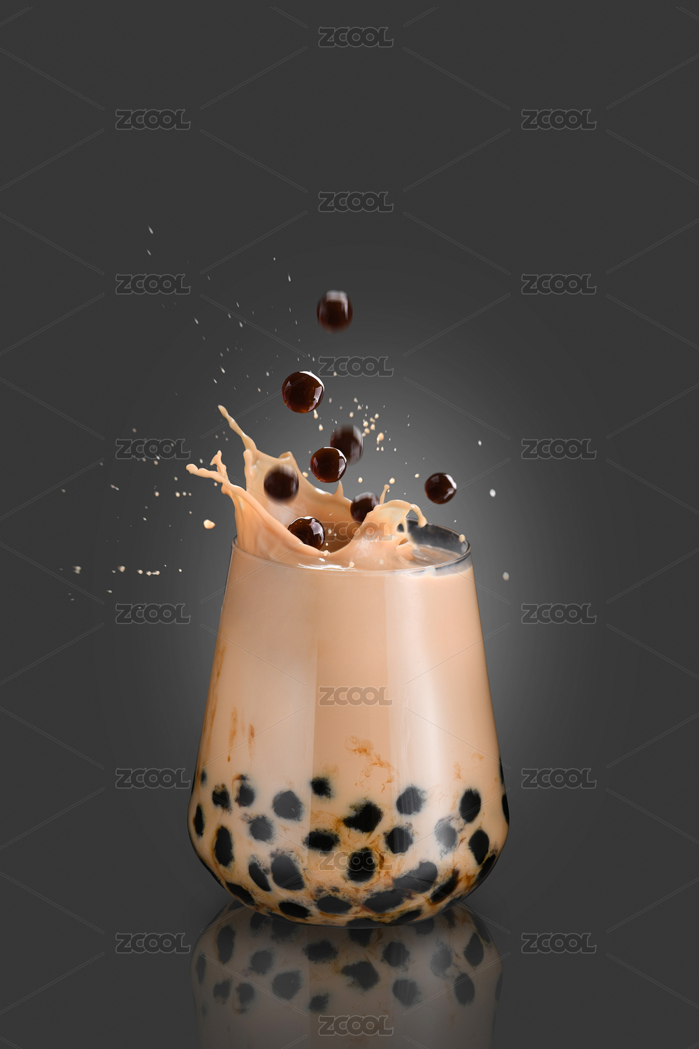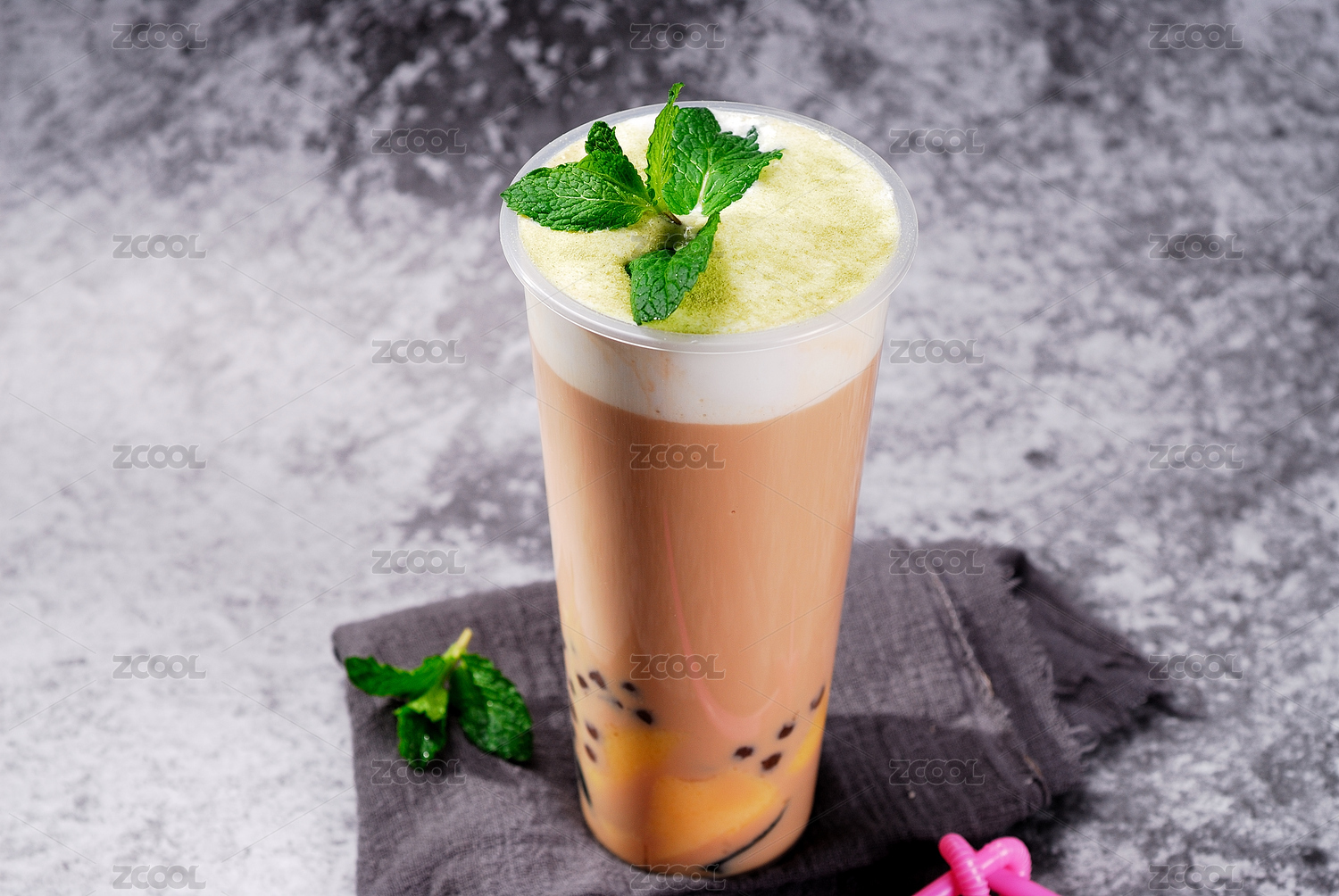 港式雪顶奶盖珍珠奶茶水彩手绘美食素材
