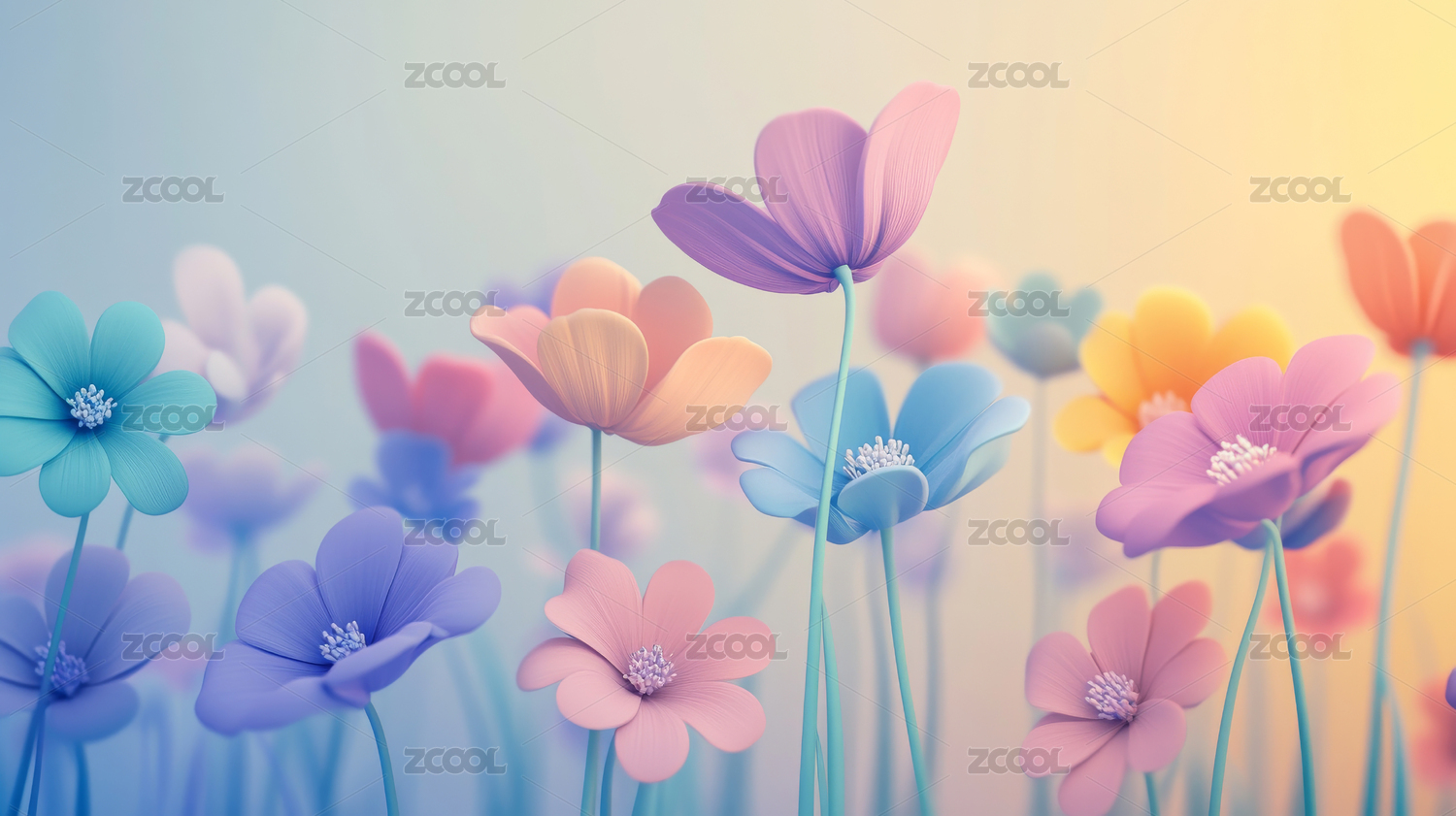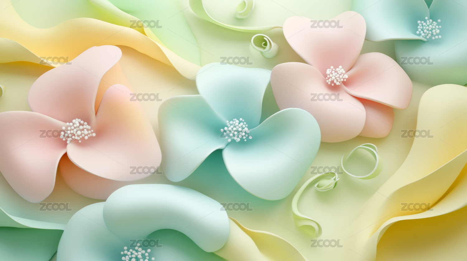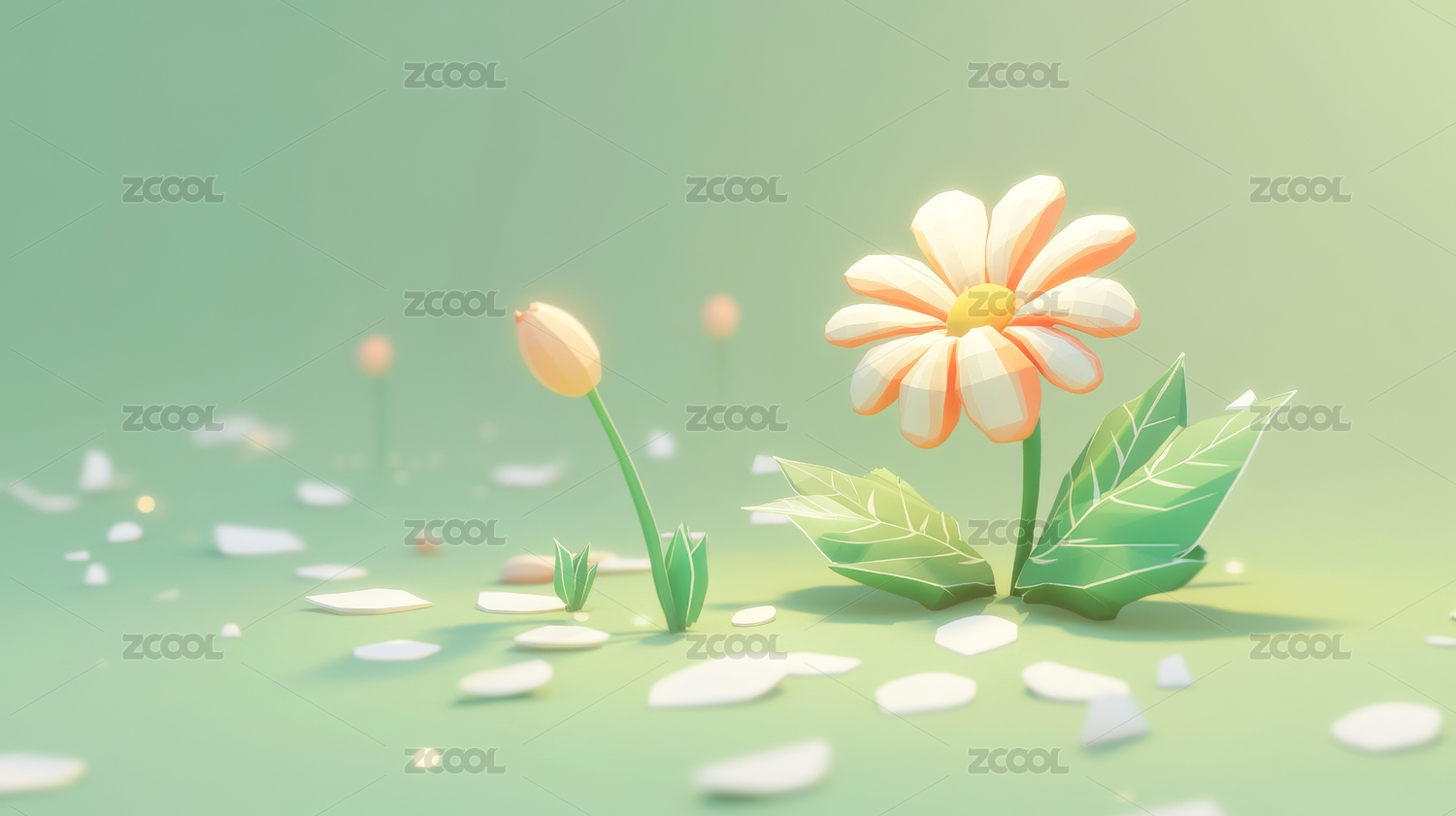 3D立体鲜花植物插图