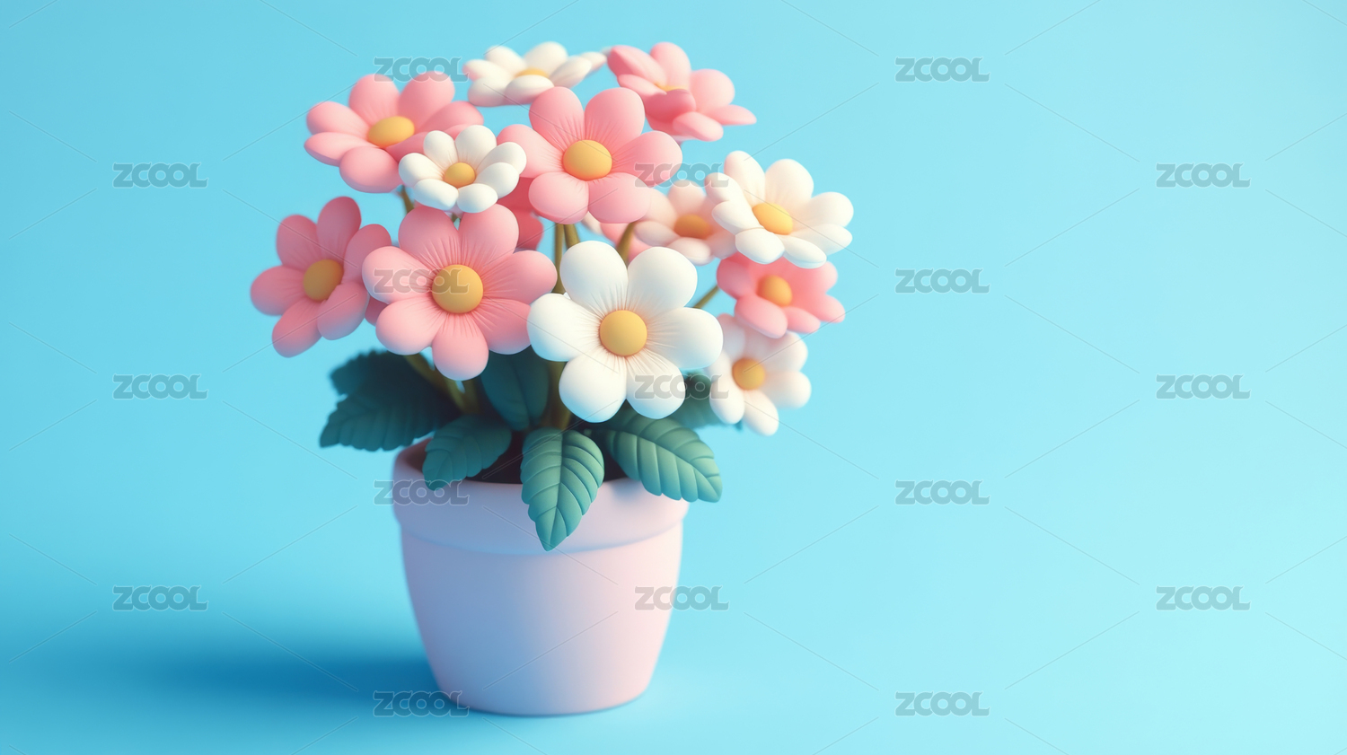 3D立体花盆植物插图