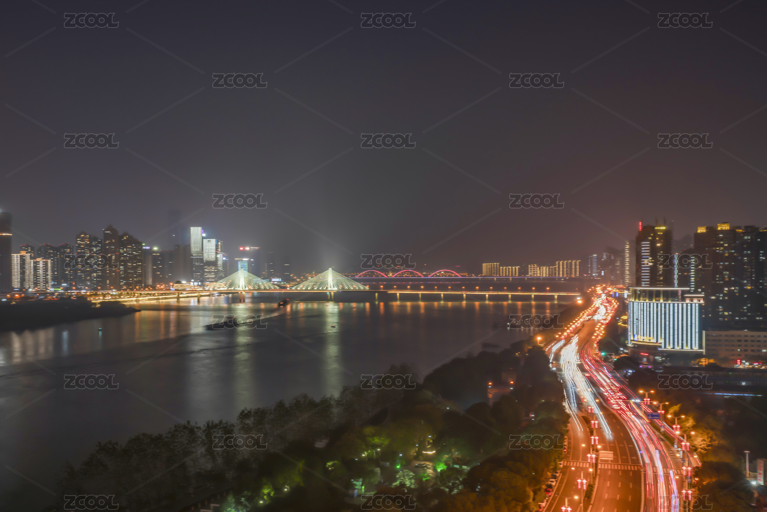 城市夜景风光俯瞰-长沙风帆广场及湘江大桥