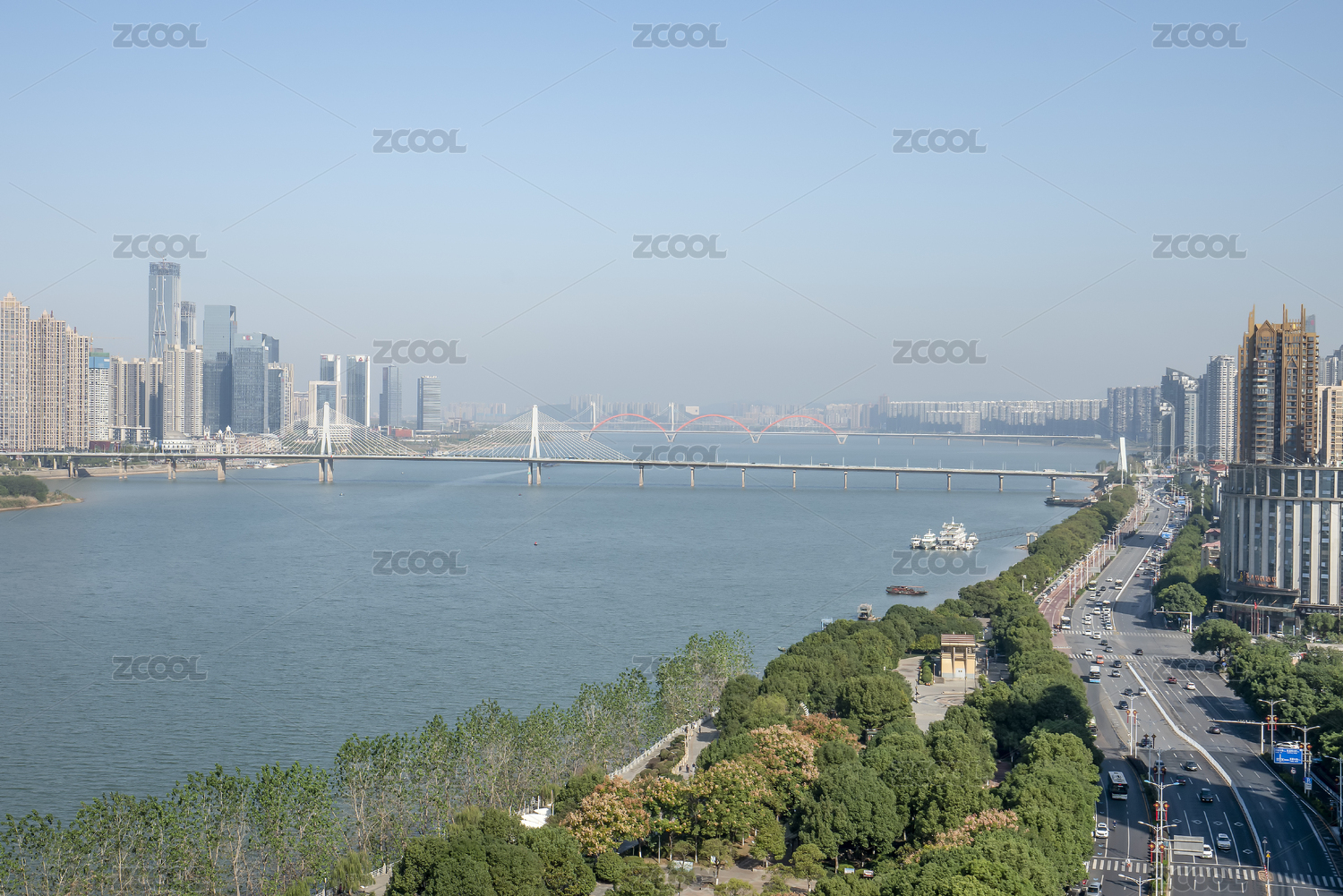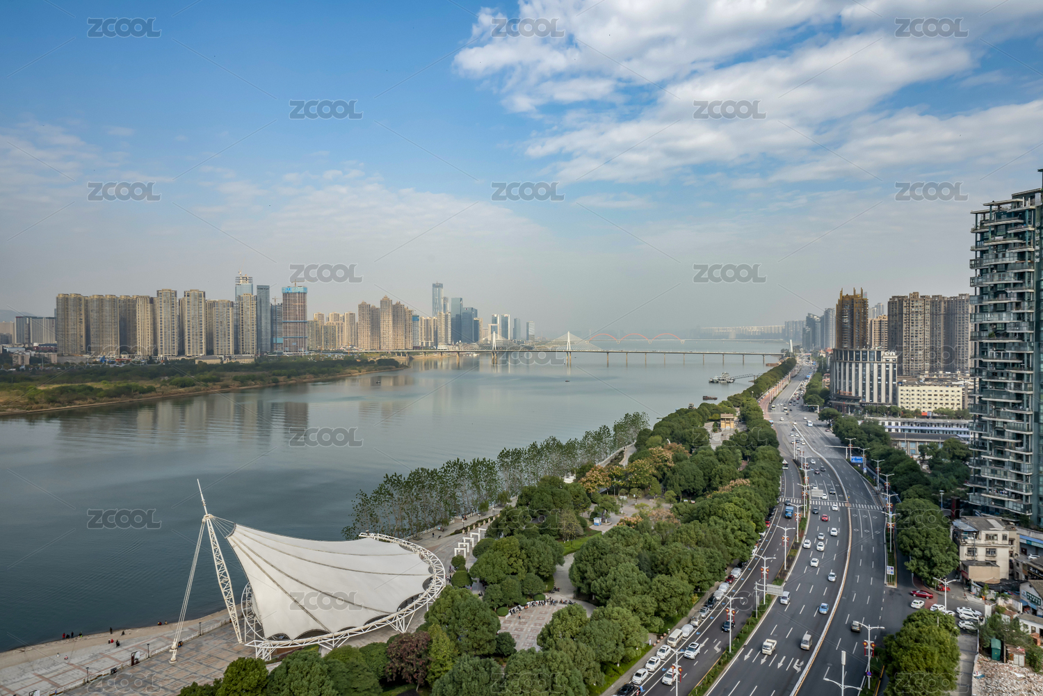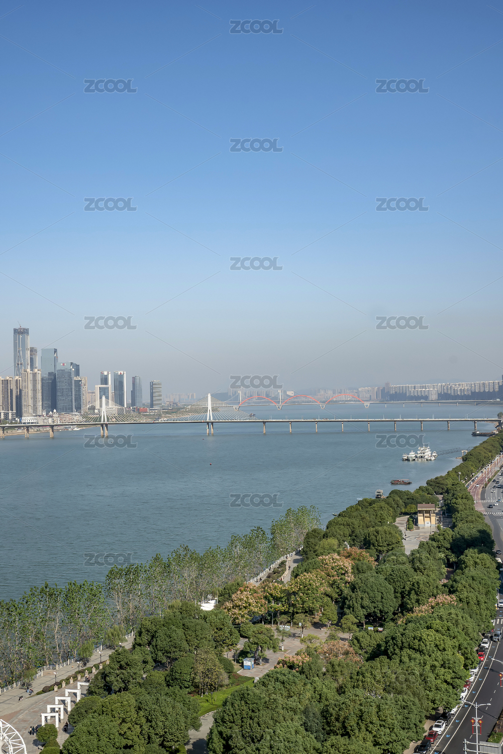 城市风光与天际线-长沙风帆广场和湘江大桥