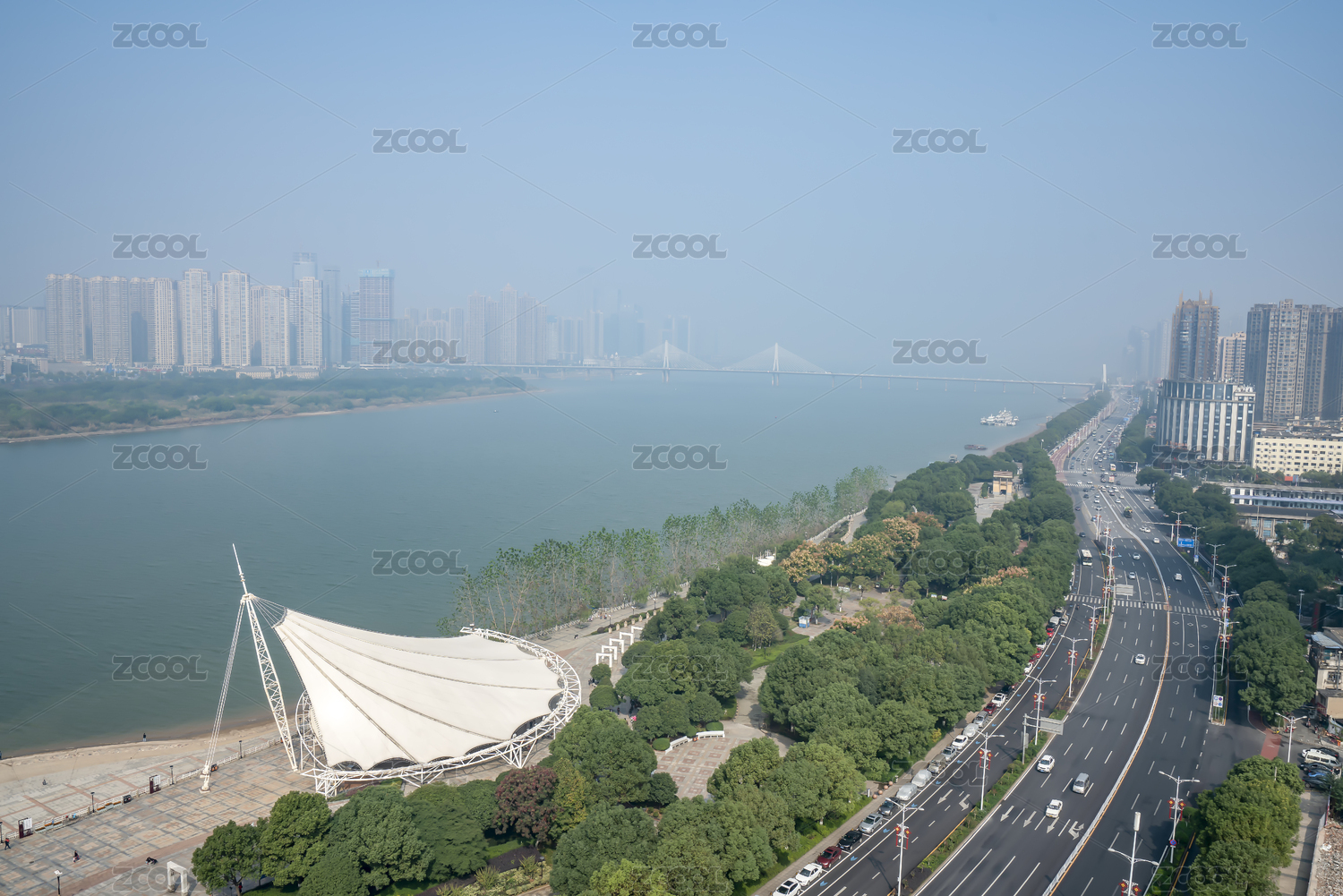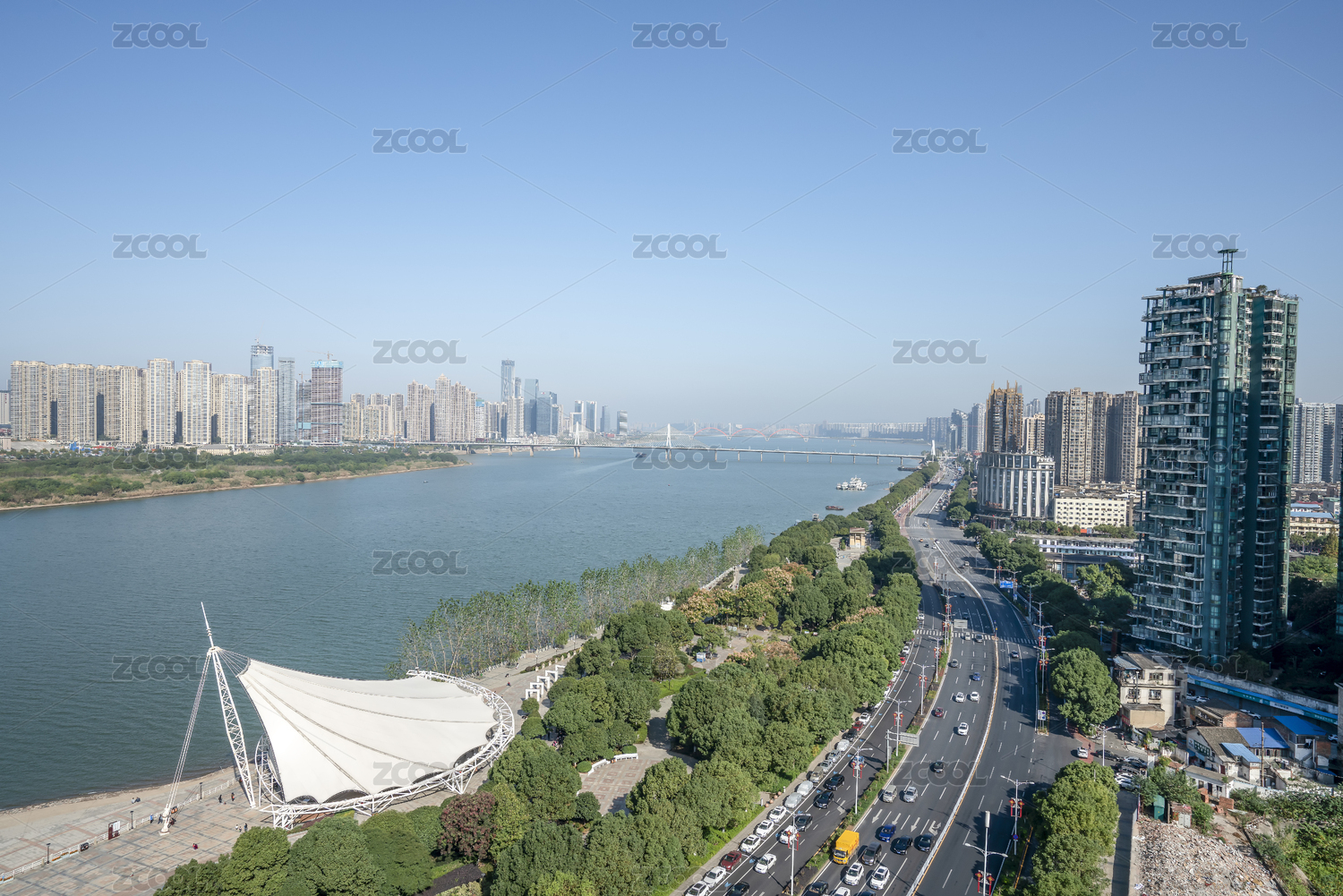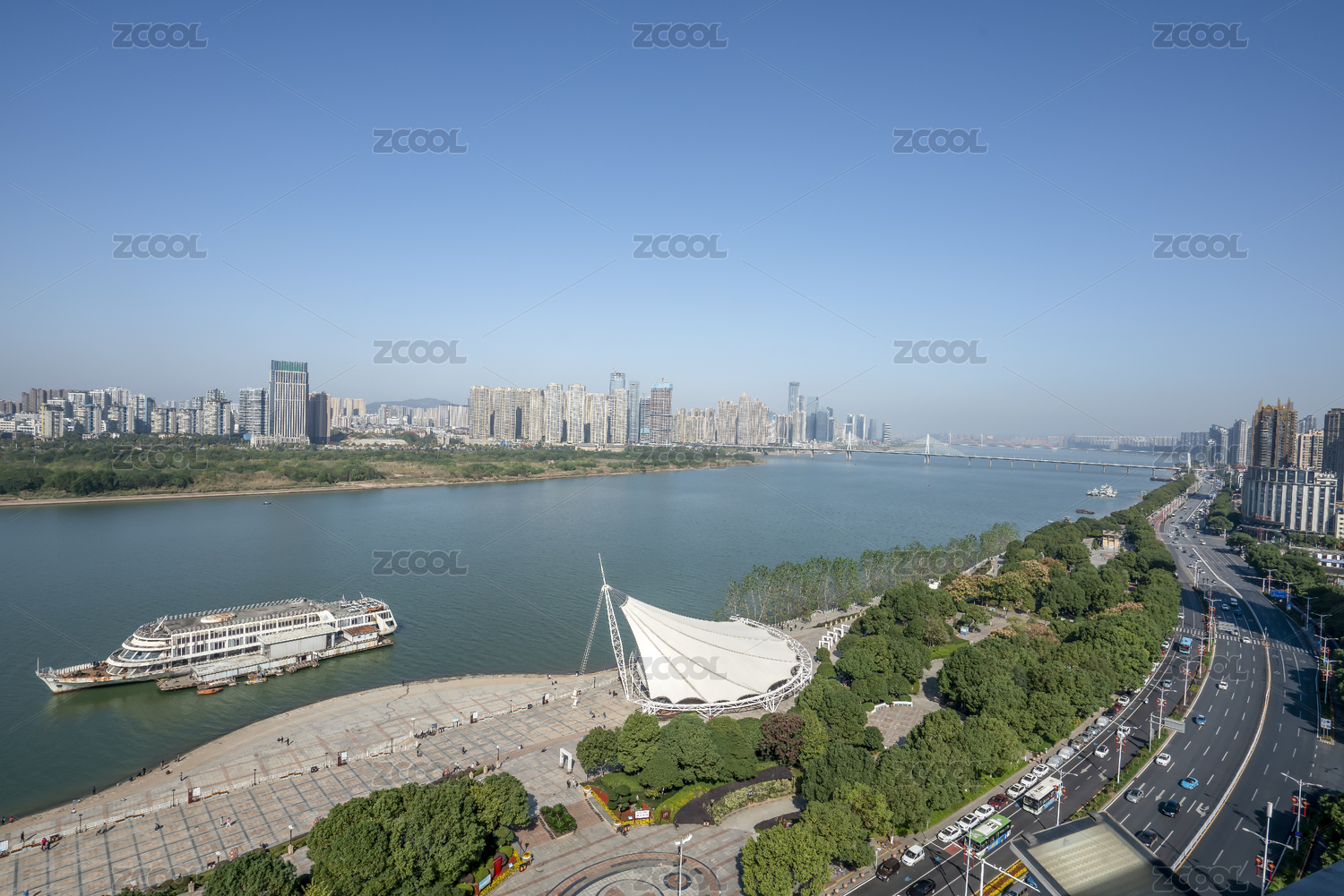 城市风光与天际线-长沙风帆广场和湘江大桥