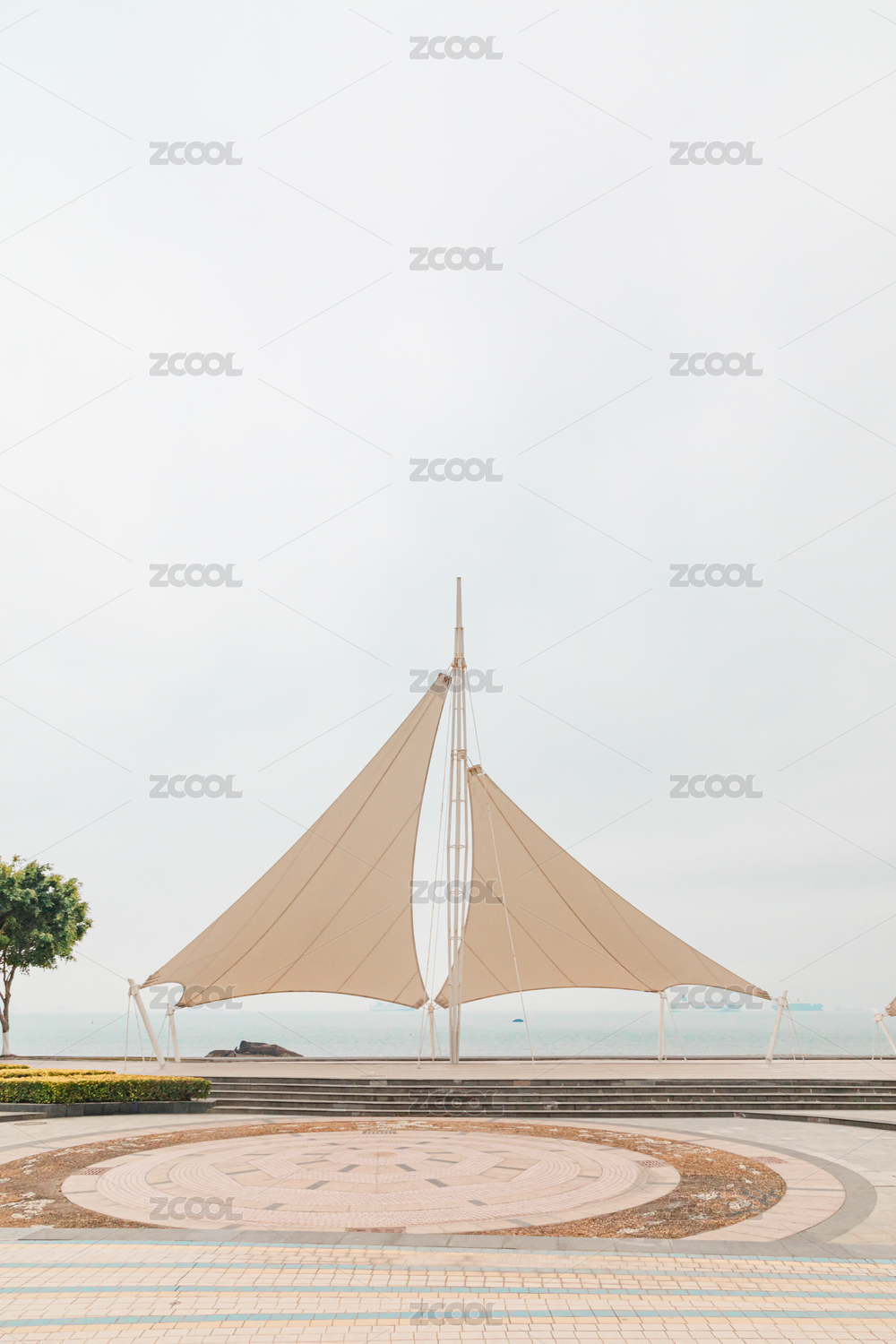 中国江苏苏州金鸡湖公园观光平台上的风帆