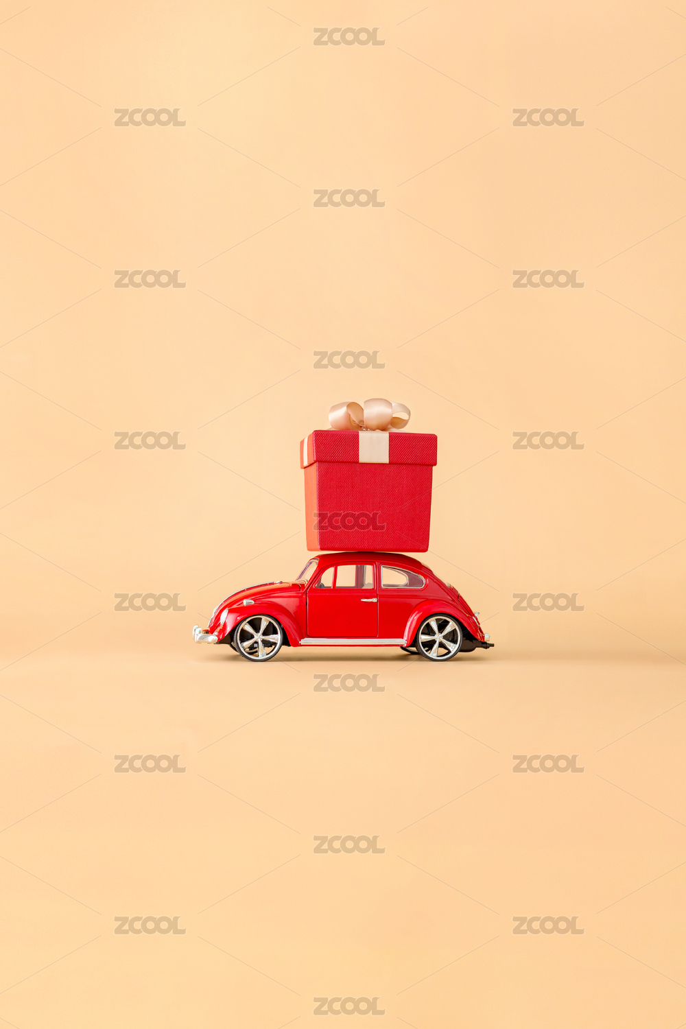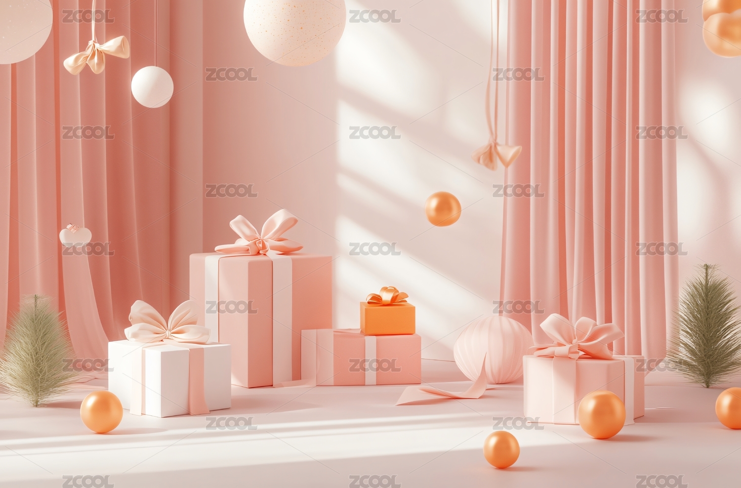 雪地上方的红色礼物口袋,圣诞节背景矢量插画