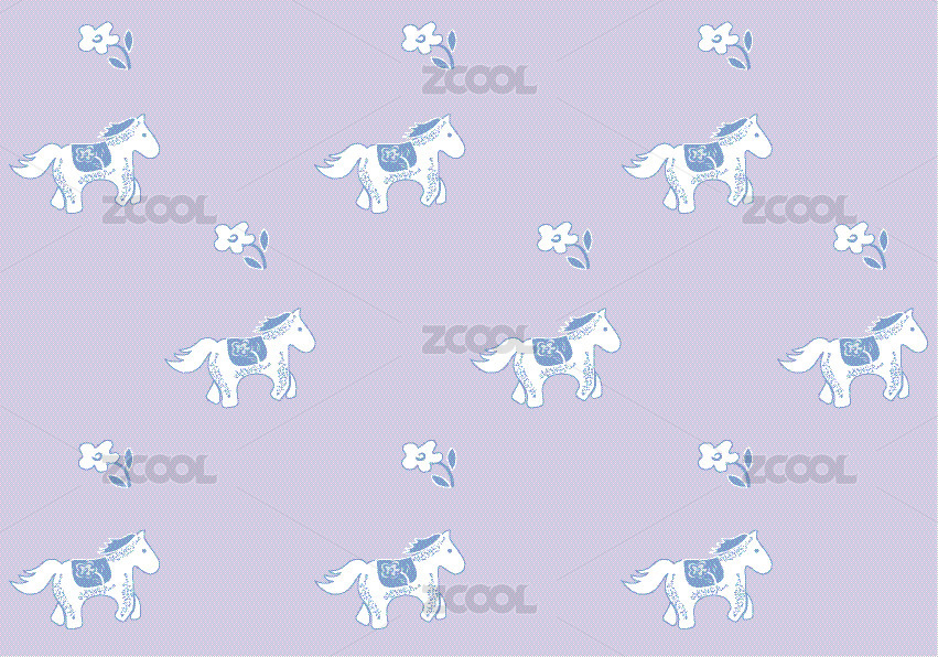 蓝色系卡通马矢量花纹图案