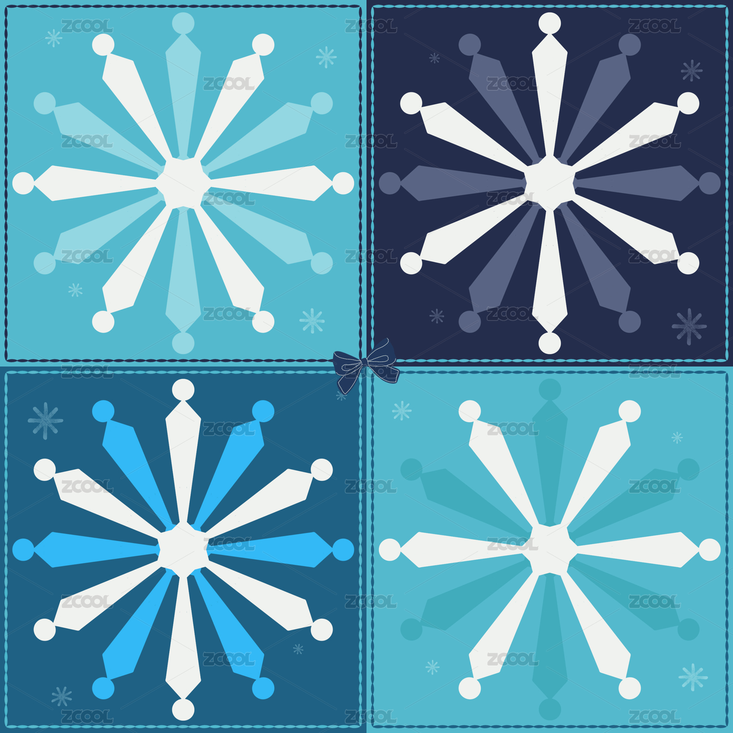 蓝色雪花拼布图案