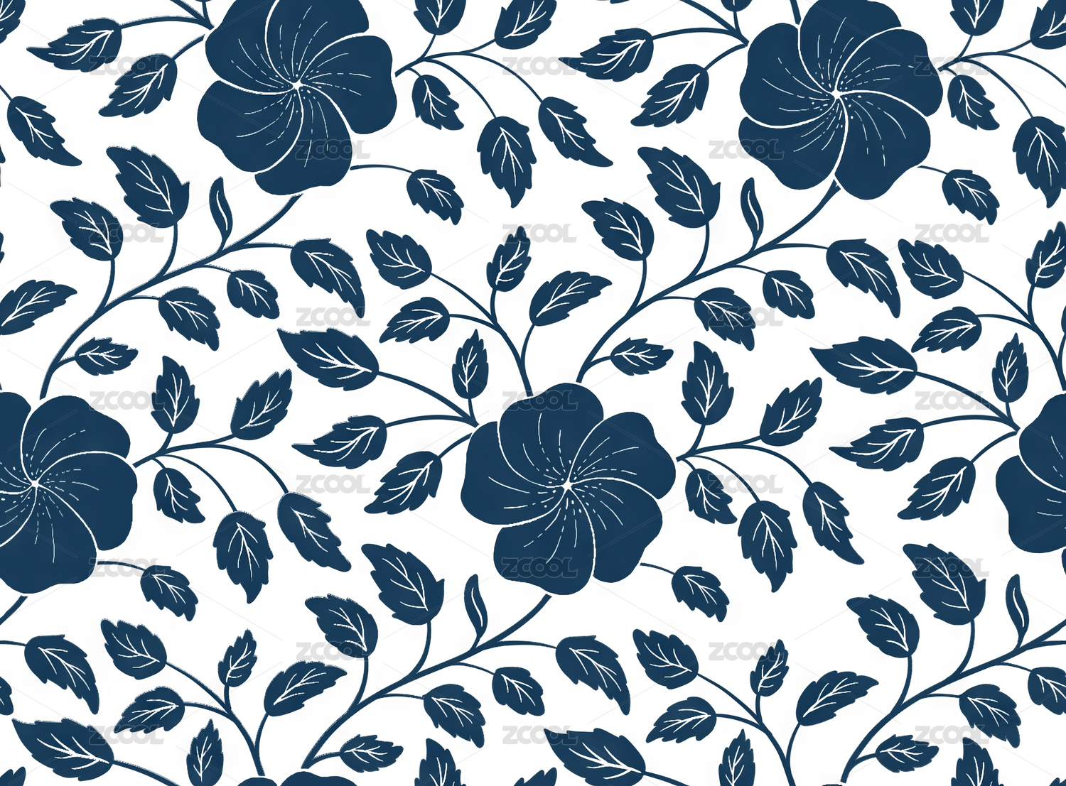 白底深蓝色花朵图案