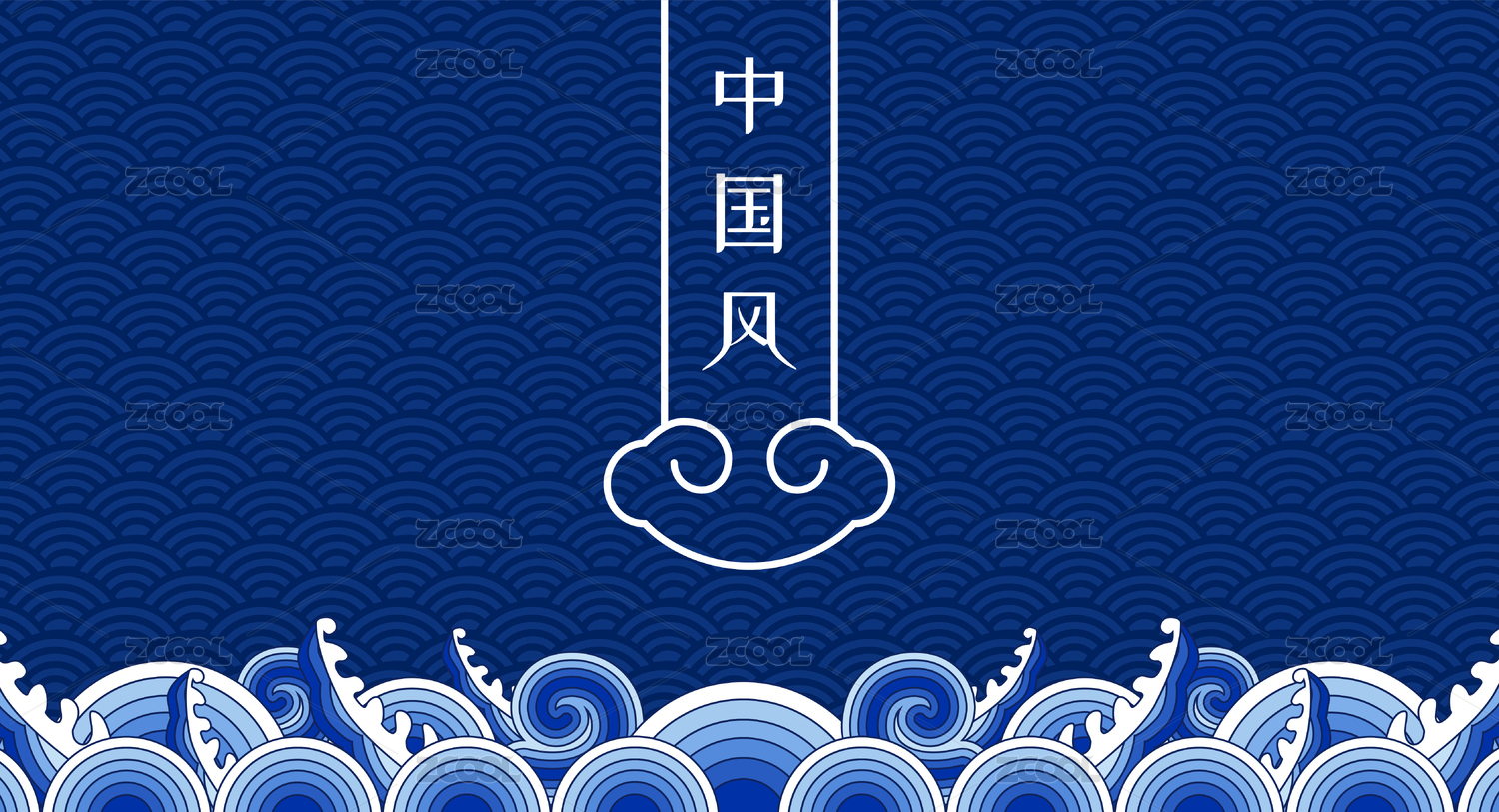 中式古典传图图案海水波浪纹蓝色