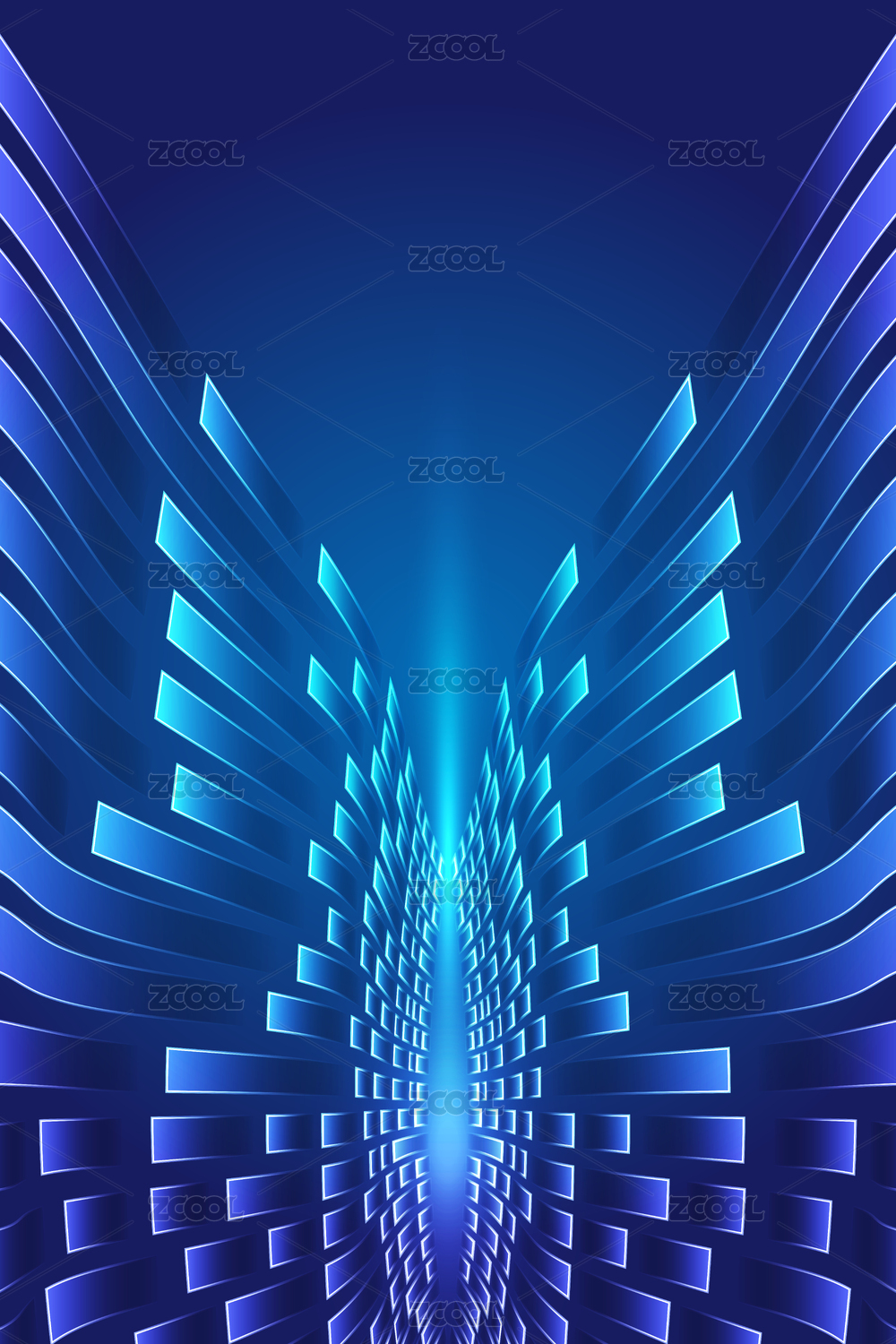 对称蓝色带状条纹构成具有科技感纹理背景