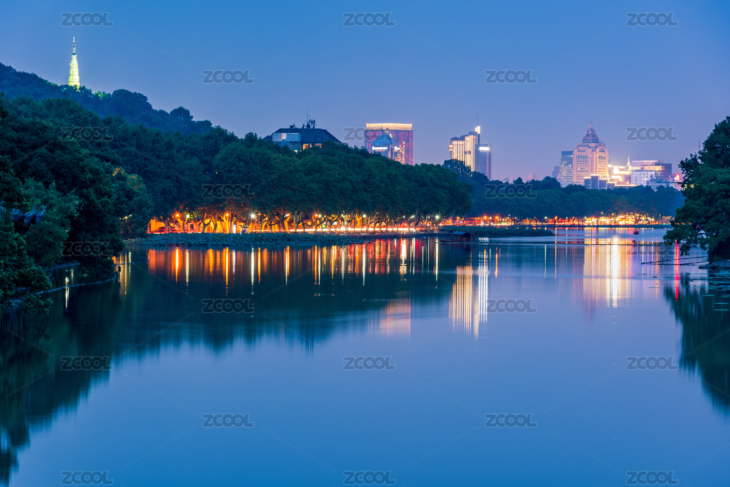 中国浙江杭州西湖城市建筑与宝石山夜景