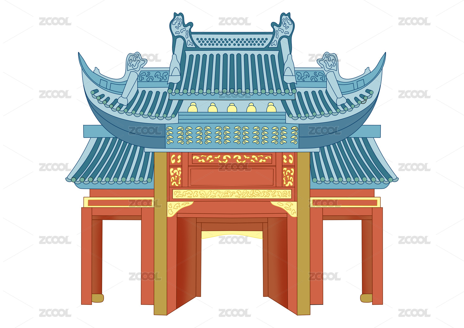 上海城隍庙风景矢量插画