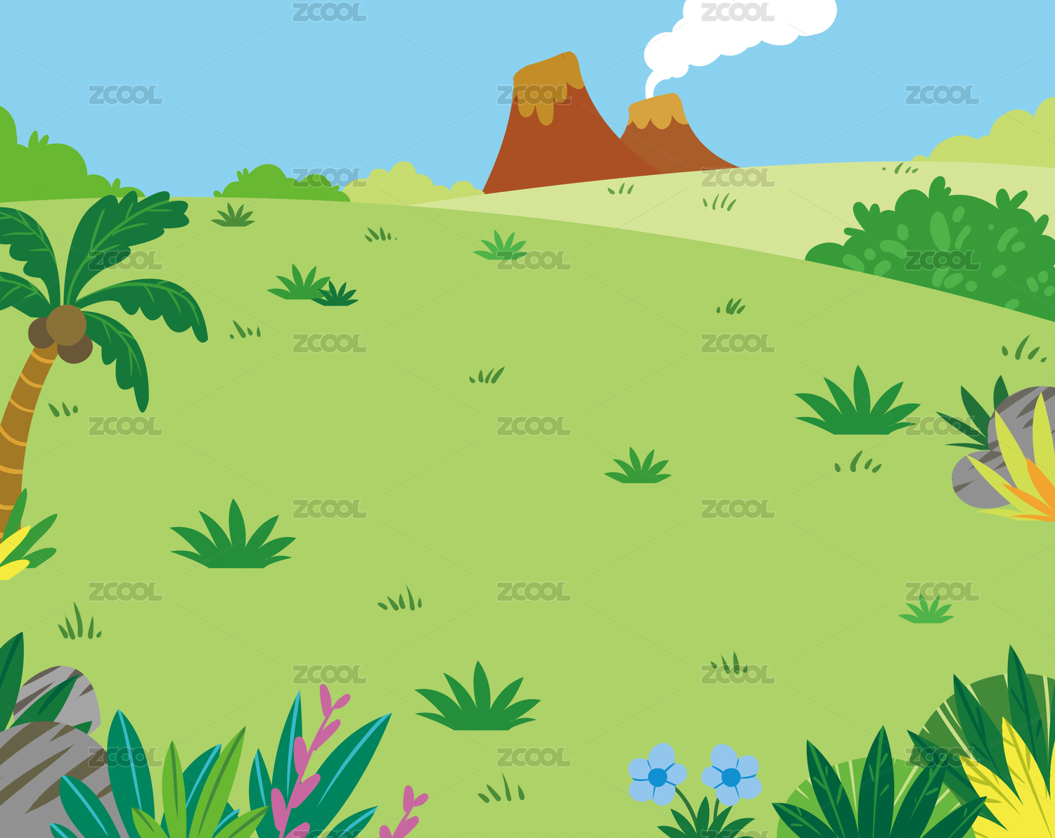 拥有火山植物的大草原背景
