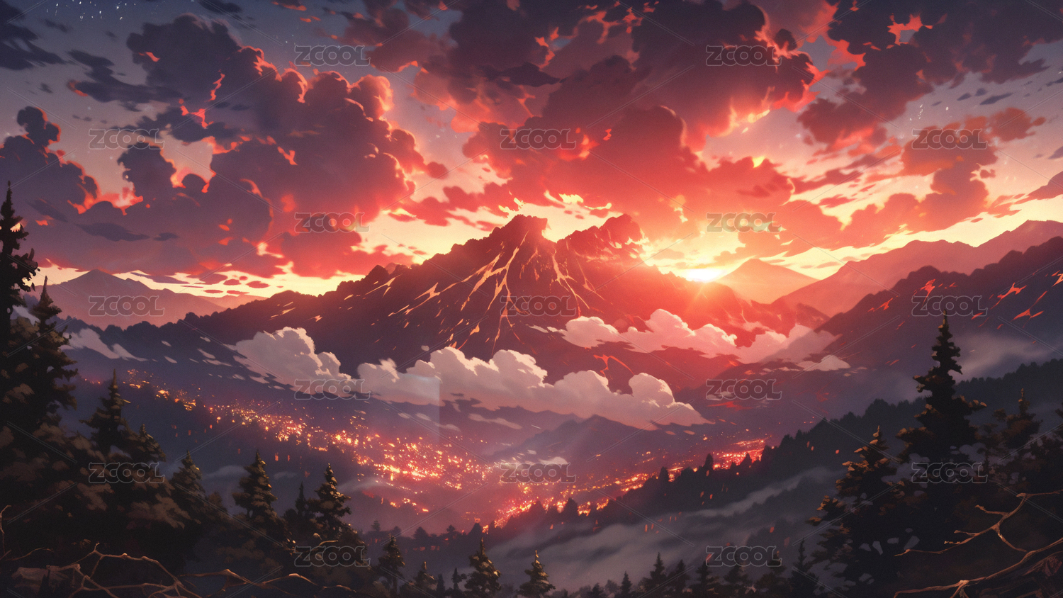 夕阳下的火山