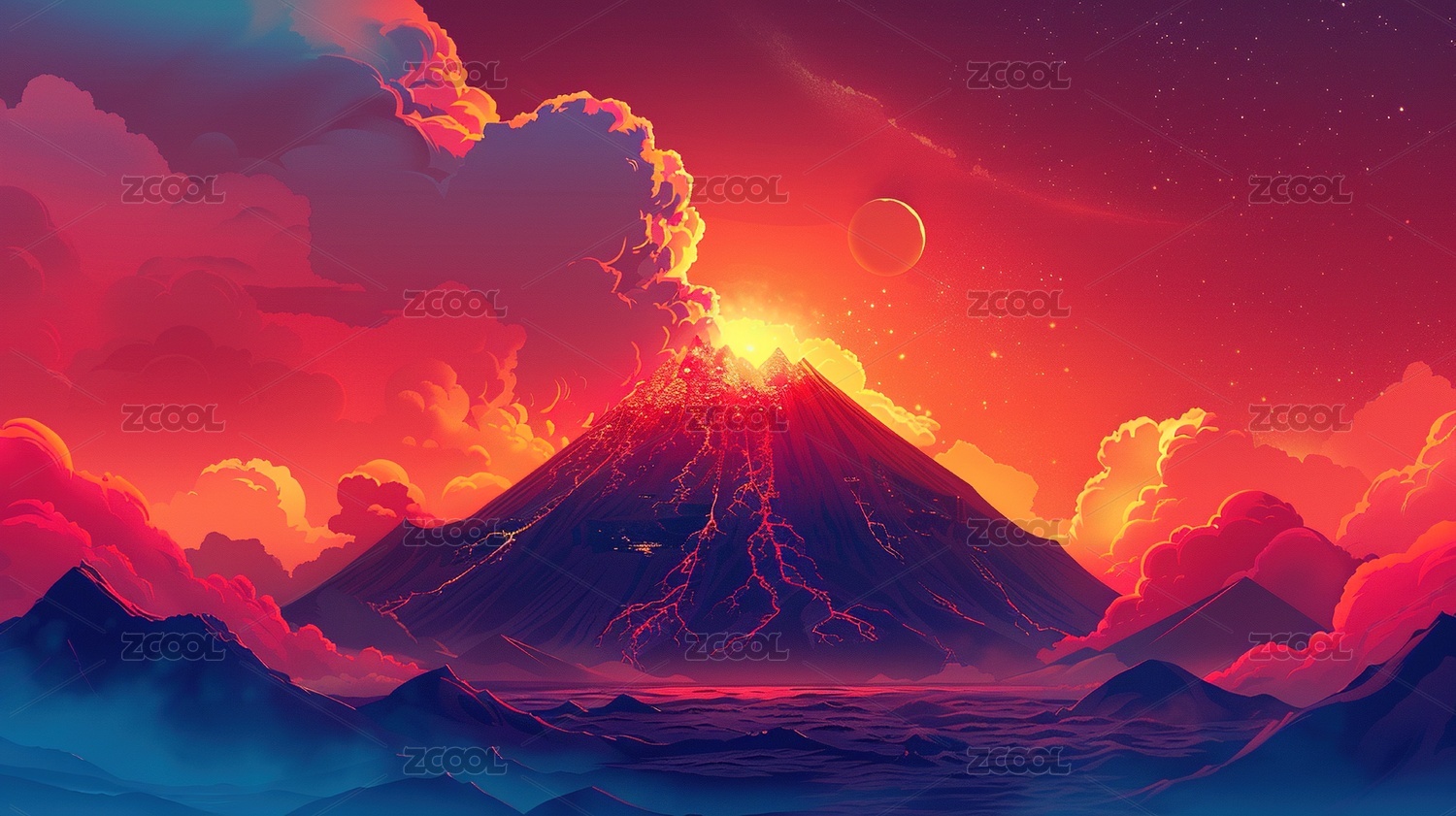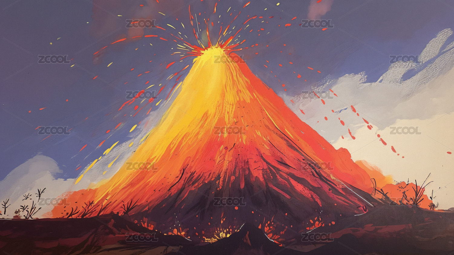 火山喷发浓烟风景