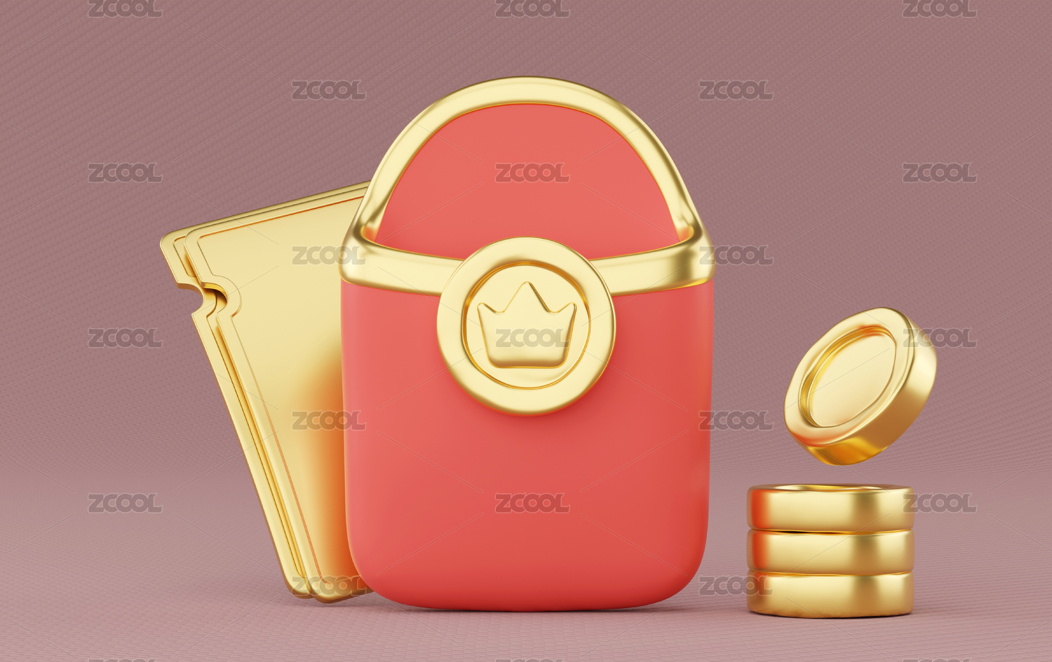 新年春节中国习俗金元宝优惠券3D