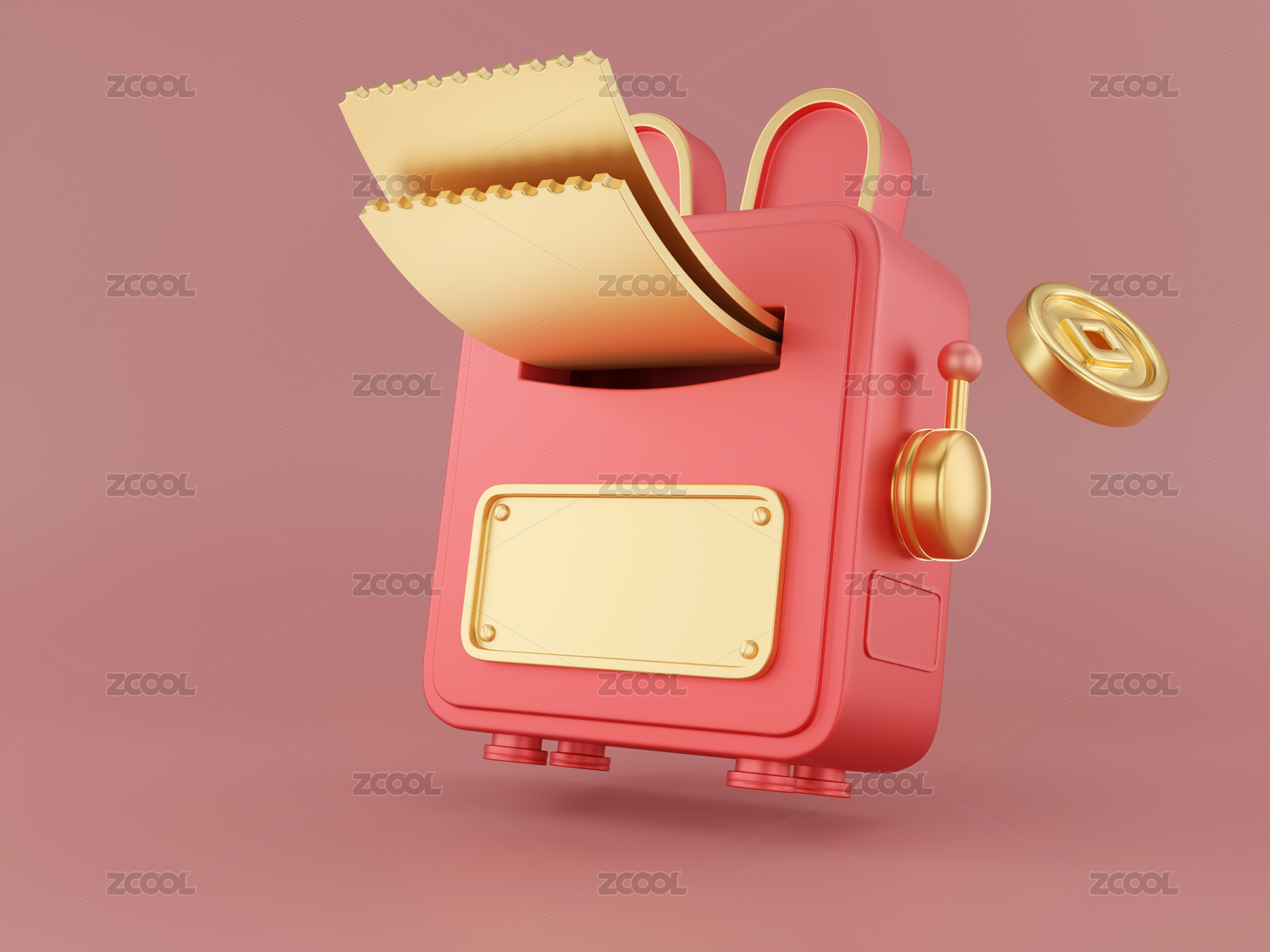 红色创意信箱抽奖吐奖机飞出金色优惠券