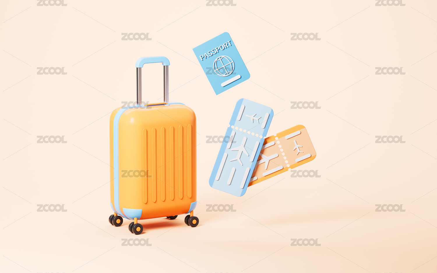 机票与行李箱旅游主题3D渲染