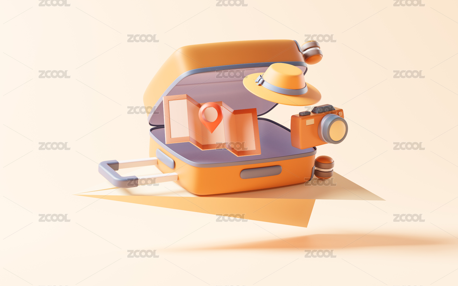 行李箱三维插画