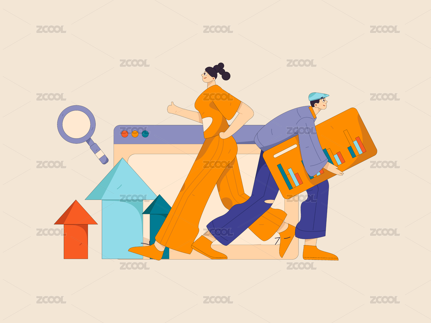 市场营销规划商务人物扁平矢量概念运营手绘