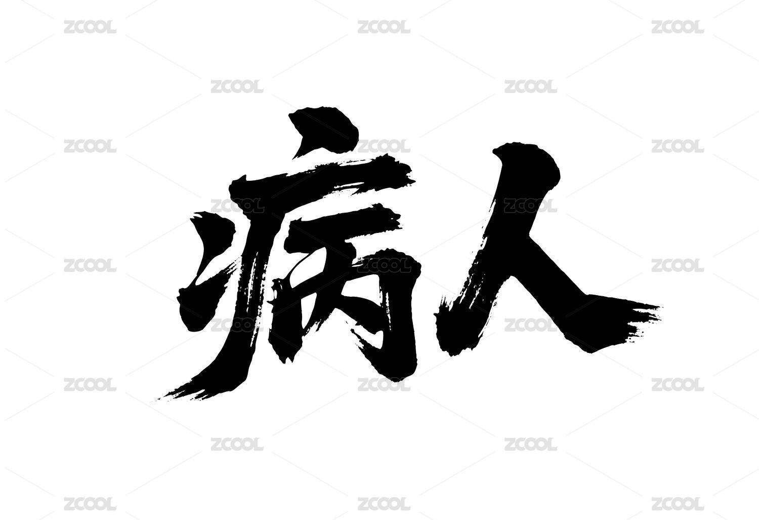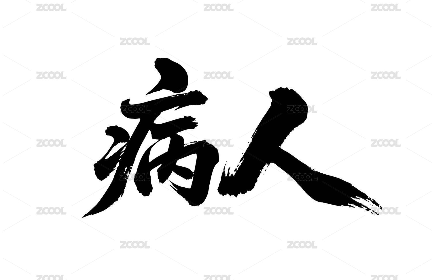 病人矢量书法手写毛笔字
