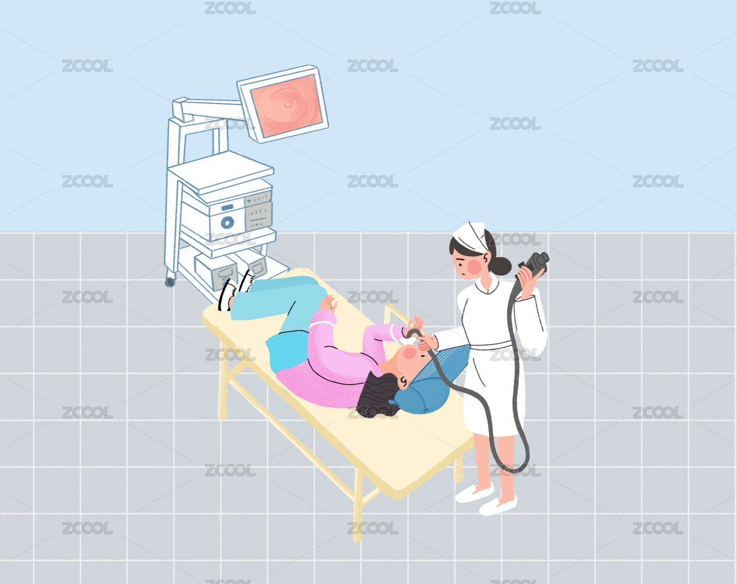 一个护士在给病人做胃镜检查