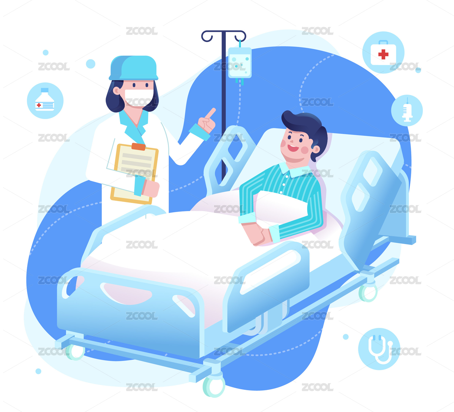 病人住院就诊矢量插画