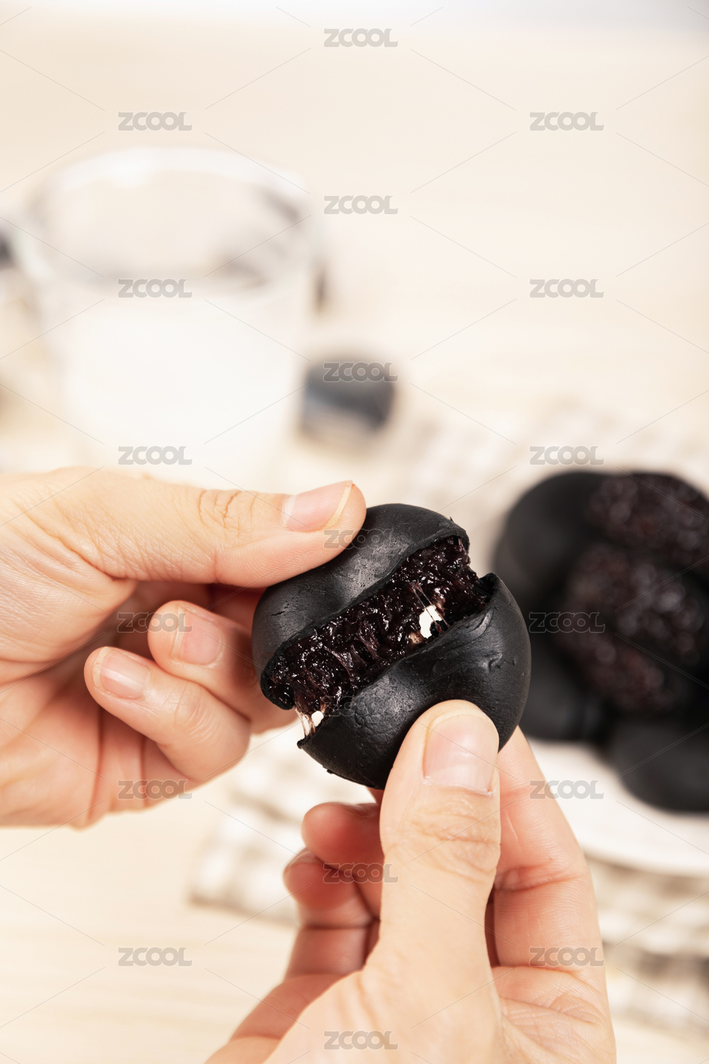 黑色背景上的一盘新鲜馅料猪肉葱花馅