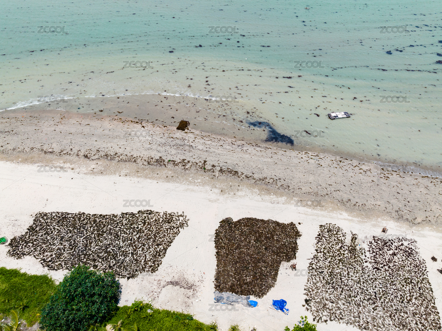 广西防城港古渔村退潮后的渔场景观