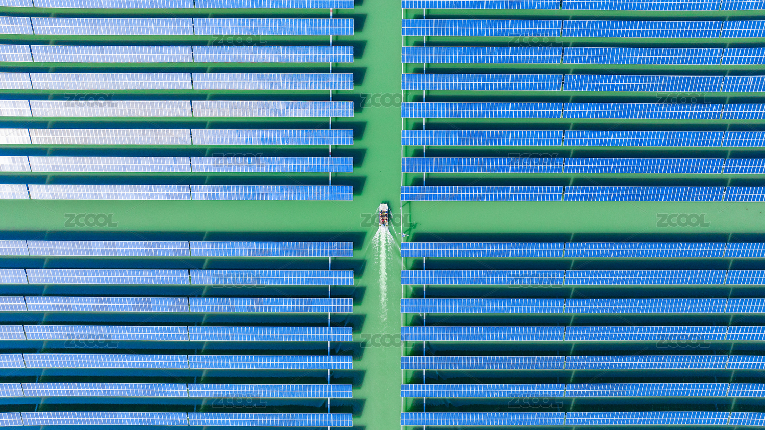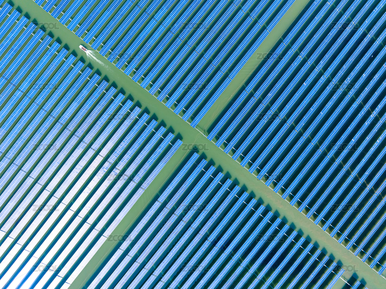 航拍光伏发电与渔场养殖结合