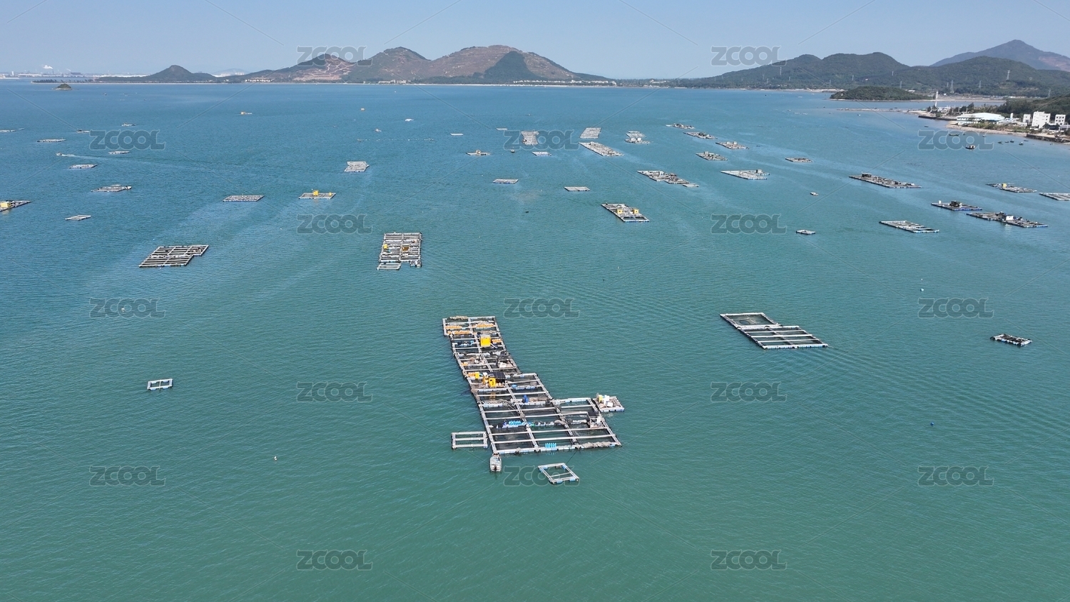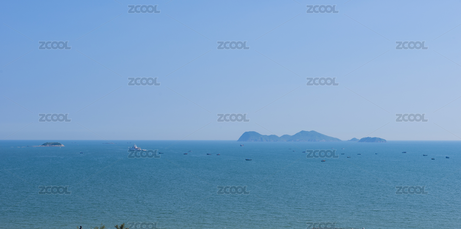 中国广东惠州市大亚湾海上岛屿风光和渔场捕鱼船队