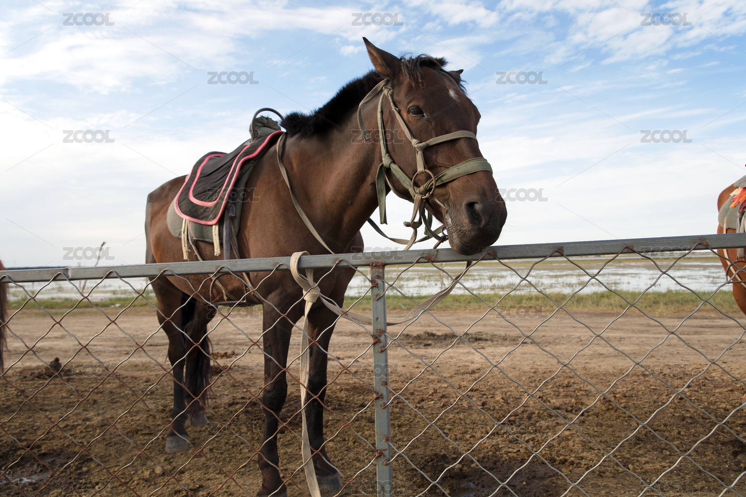 户外旷野马圈里养殖的马匹